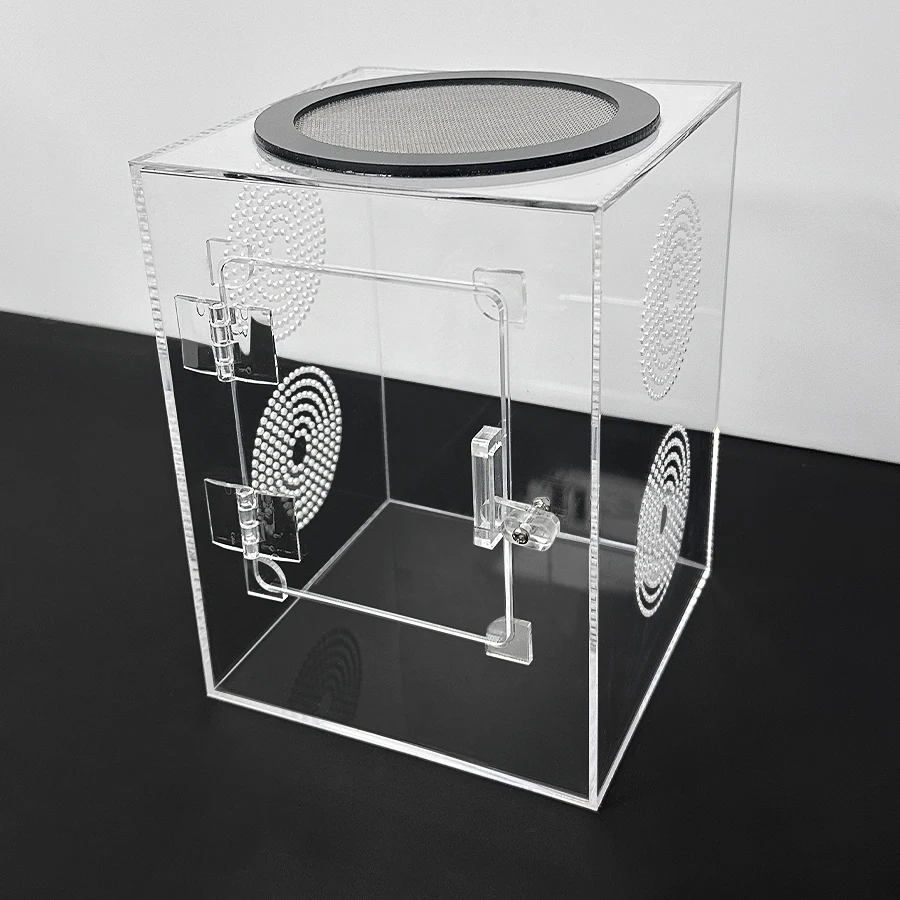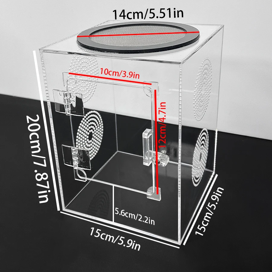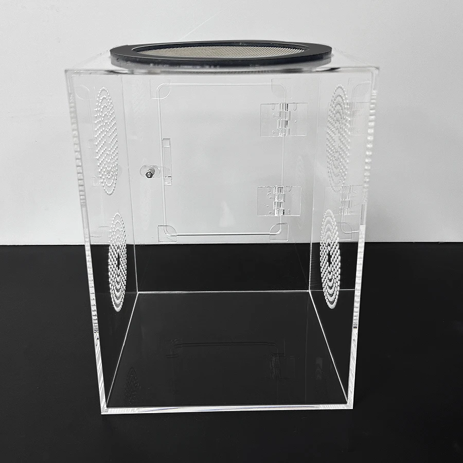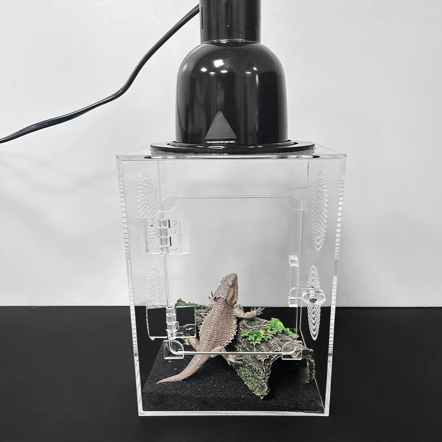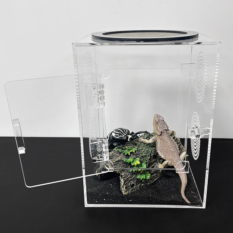 1 Peice Transparent Small Amphibious Reptile Breeding Acrylic Tank for Lizard, Snake, Insect With Breathable Holes,Net and Door