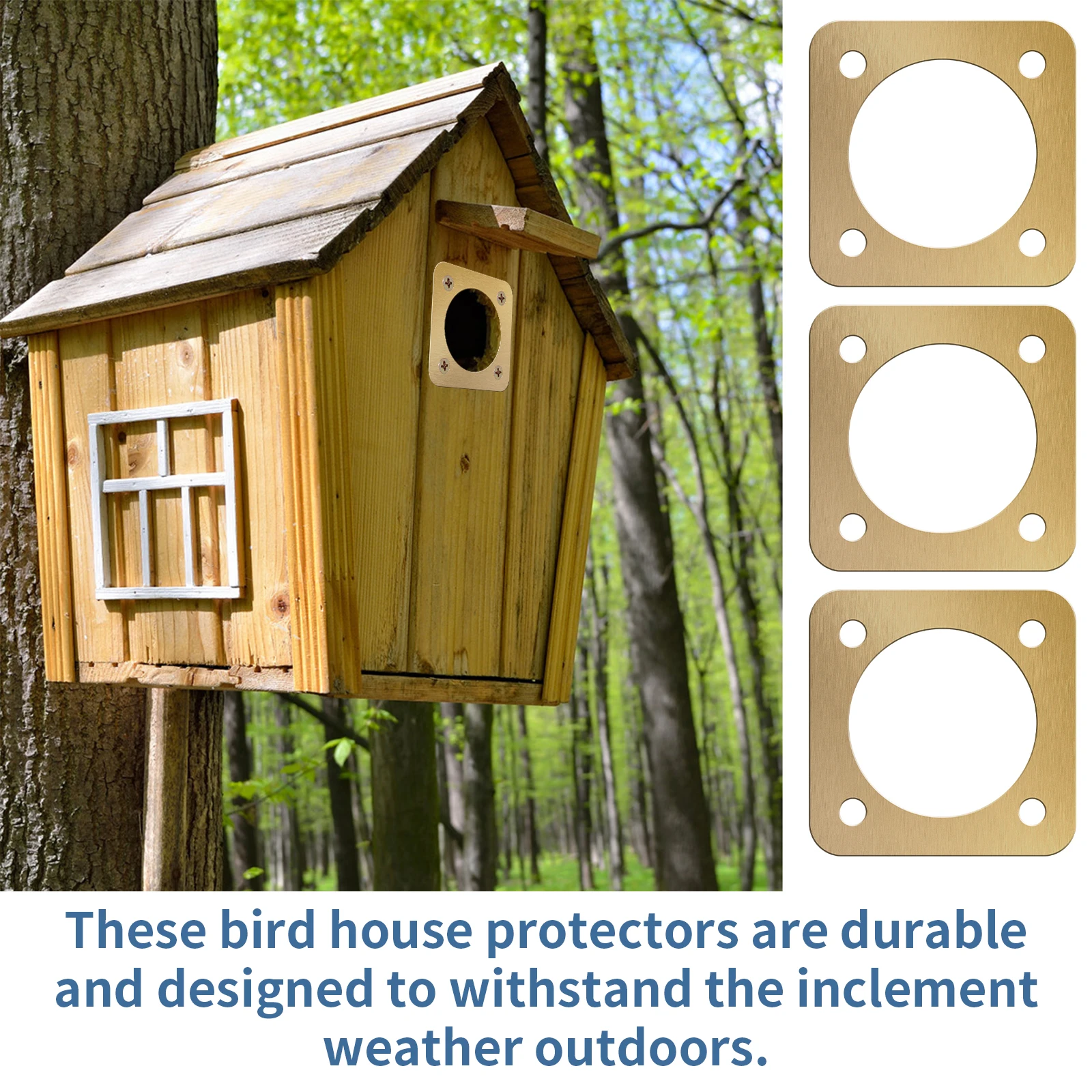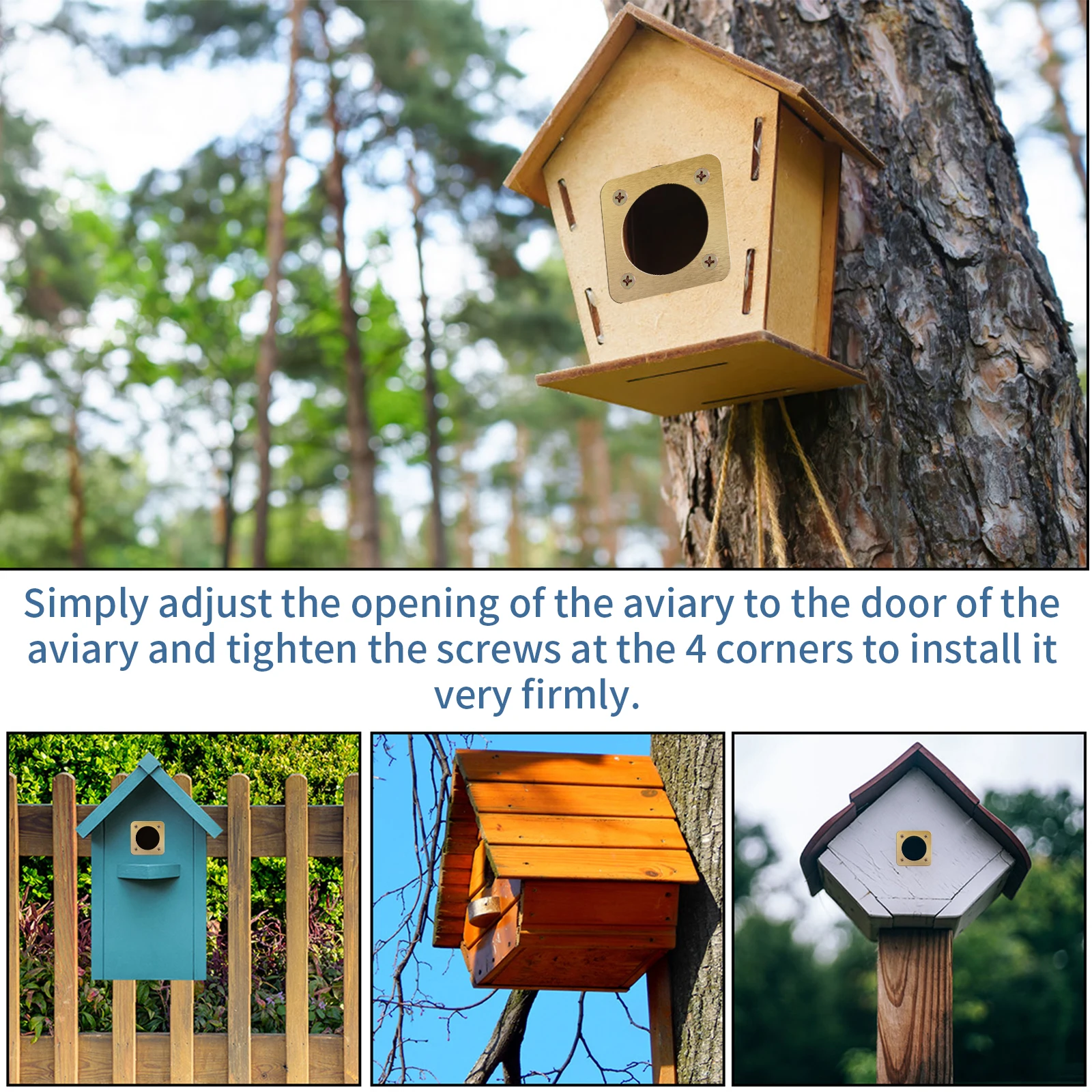 [Easy to Install] Each bird house guard measures about 5 x 5 cm/2 x 2 inches, and the opening diameter is 1 1/2 inches. It is easy to install, just adjust the birdhouse opening to the door of the birdhouse and tighten the screws at the 4 corners to install it very firmly