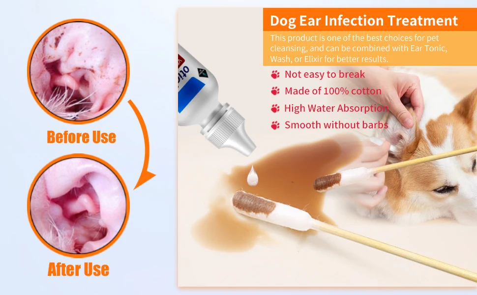 【Large Size】- Our long swabs are 6 inches in length. It is long enough to reach any small crease deep in your pet's ear, removing all the dirt and debris from your pet's ear canal, but these extra long cotton swabs will not go through your dog's ear canal, making cleaning easier and safer