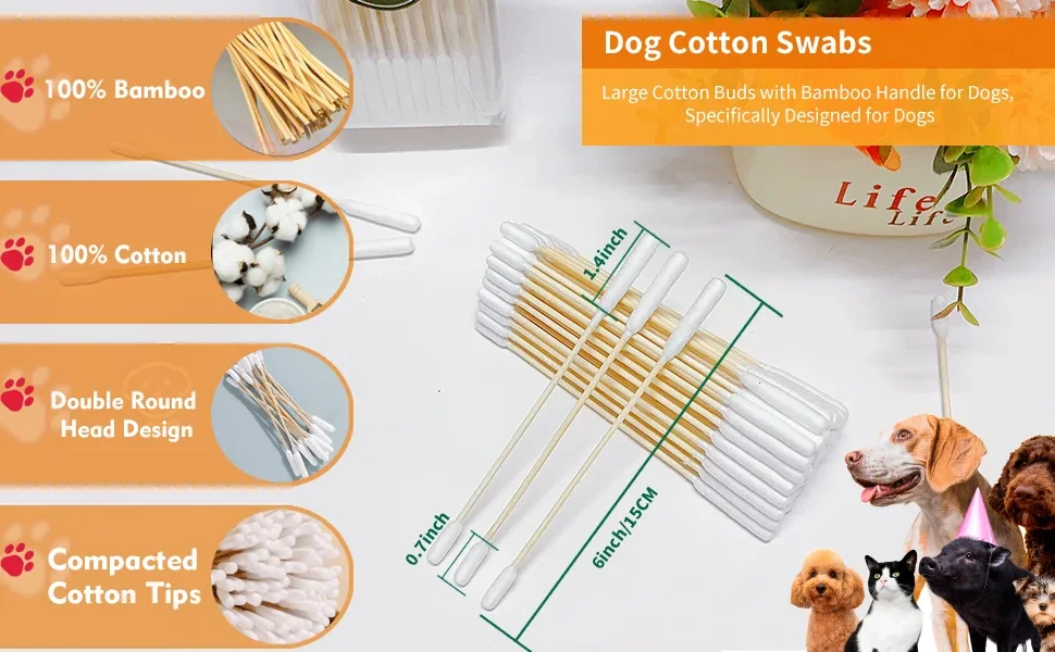 Special Design】- Compared with ordinary cotton swabs, our swabs are specially designed high quality long cotton swabs from size, shape and material for dog, cat or other pets' ear care, they are perfect for your furry friends