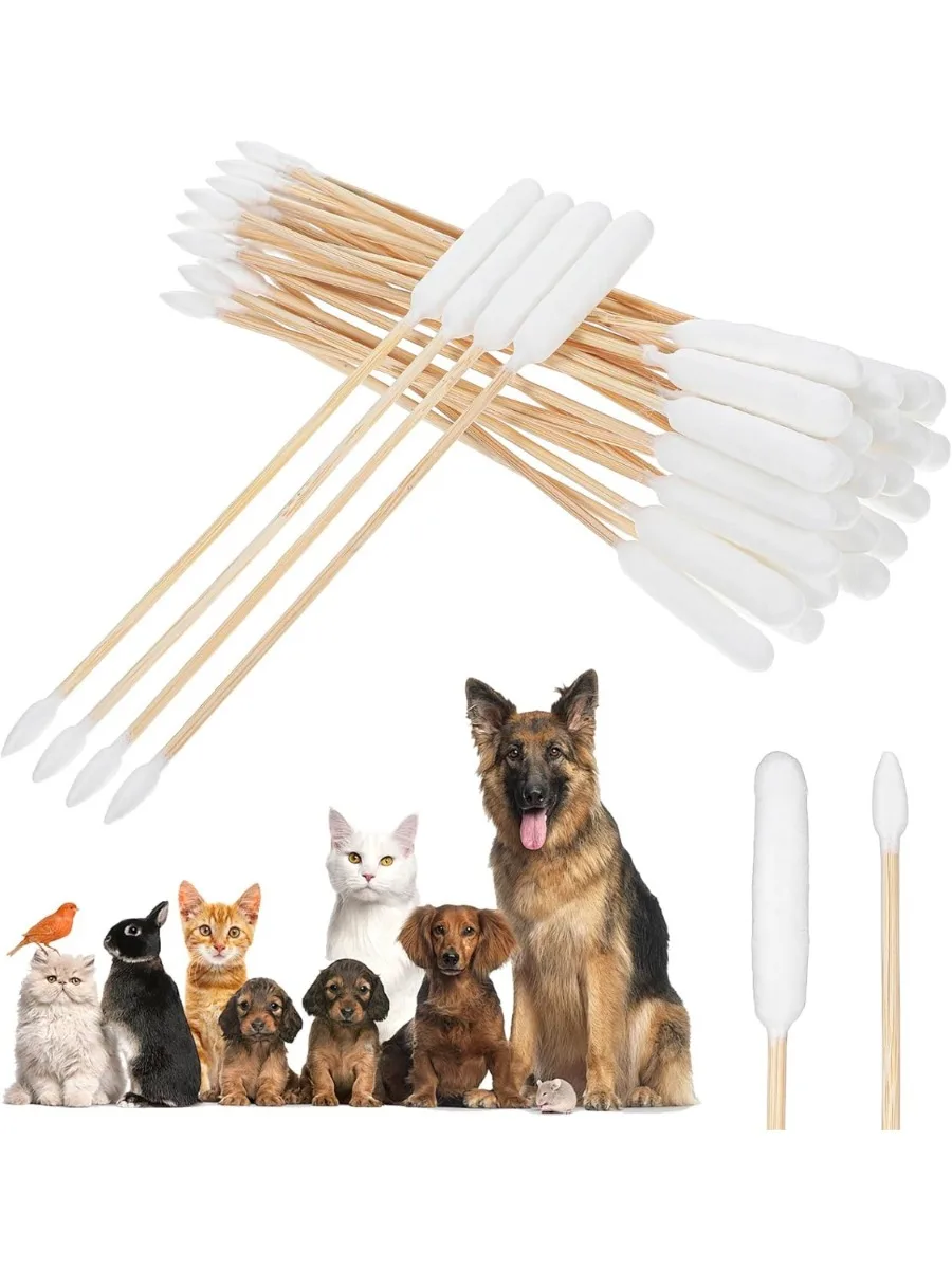 【High Quality】- Our extra large cotton swabs are made of tightly woven cotton and natural bamboo, so you don't have to worry about unwinding or breaking during use. The lint-free dog ear swabs are also highly absorbent, so you can easily clean your pet's ears or wound care, apply medication and more