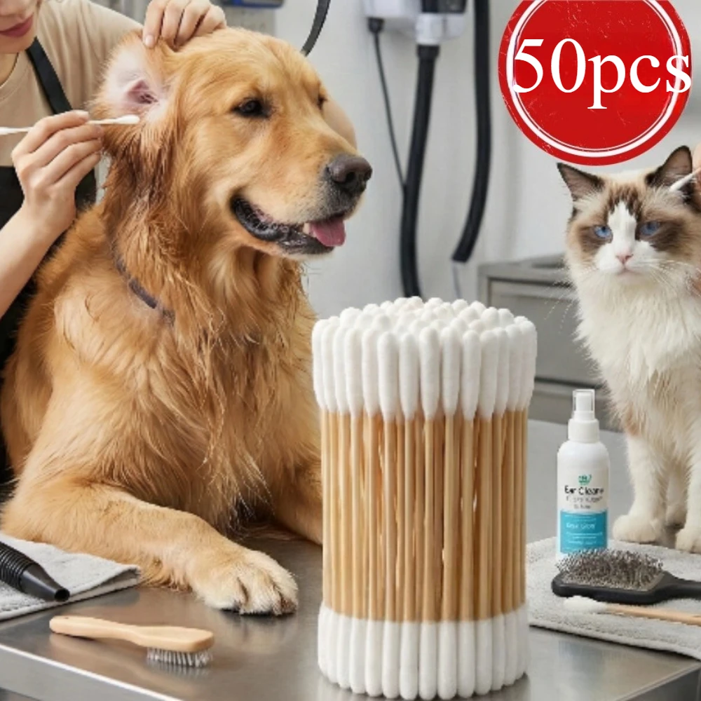 【Wide Applications】- Includes 50pcs double tip cotton swabs for ears, equivalent to 50pcs single tip cotton swabs. Dog cotton buds are not only suitable for pet ear care, but also for daily cleaning, such as cleaning keyboards, cameras, cell phone ports, headphones, jewelry of dust or stains