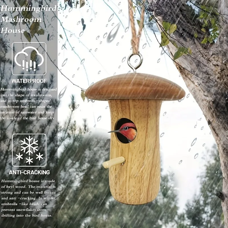1Pc Outdoor Hummingbird House Natural Wooden Hanging Hummingbird Nest Wild Bird Feeder Outdoor Garden Yard Wooden Hanging Crafts