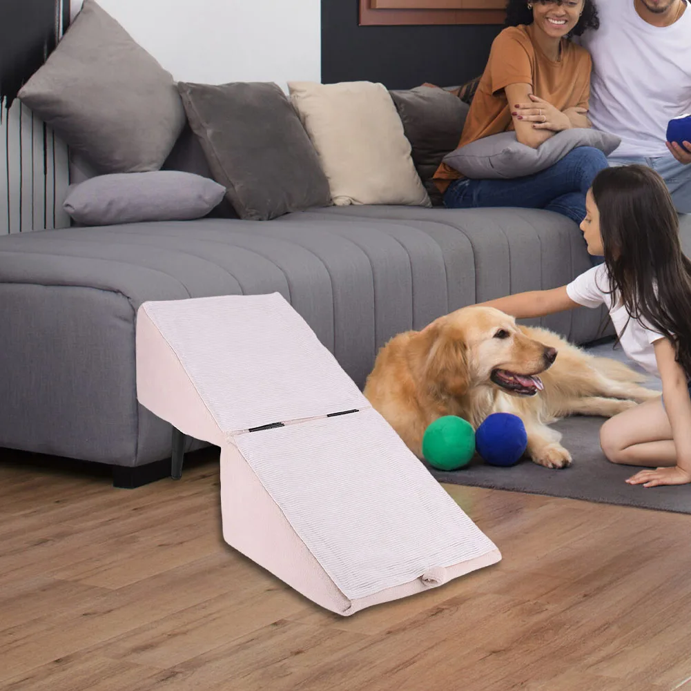 4.Material Insight Cat Ramp: The pet dog stair features a solid wood frame with reinforced corners and an anti-tilt design. Removable and machine-washable seat cover for easy cleaning.
