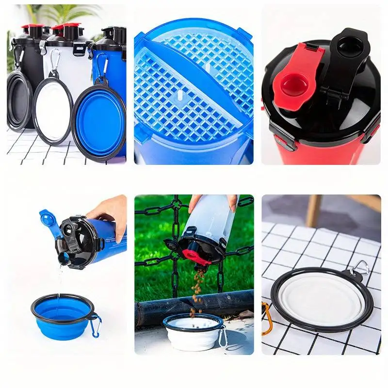 Dual Functionality: The pet water bottle doubles as a food container, making it a versatile and space-saving addition to your pet travel gear.