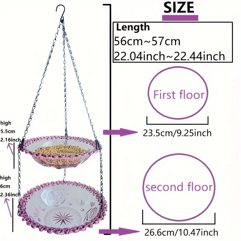 2-layer Bird Feeder, Suspended Bird Bath, Courtyard Decoration, Durable Tray with Chain for Bird Bath, Outdoor Bird Feeding
