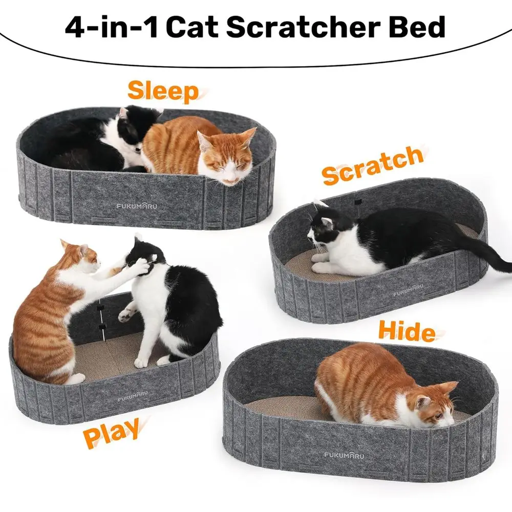 Career Choice: Made of non-toxic corrugated cardboard and harmless material, perfectly suitable for your adorable cats. Two oval thicker scratch pads are used, making it exceptionally durable and wear-resistant. The breathable high-quality cardboard provides a more comfortable experience when cats lie down. The detachable design allows you to take the pads out and use them separately.
