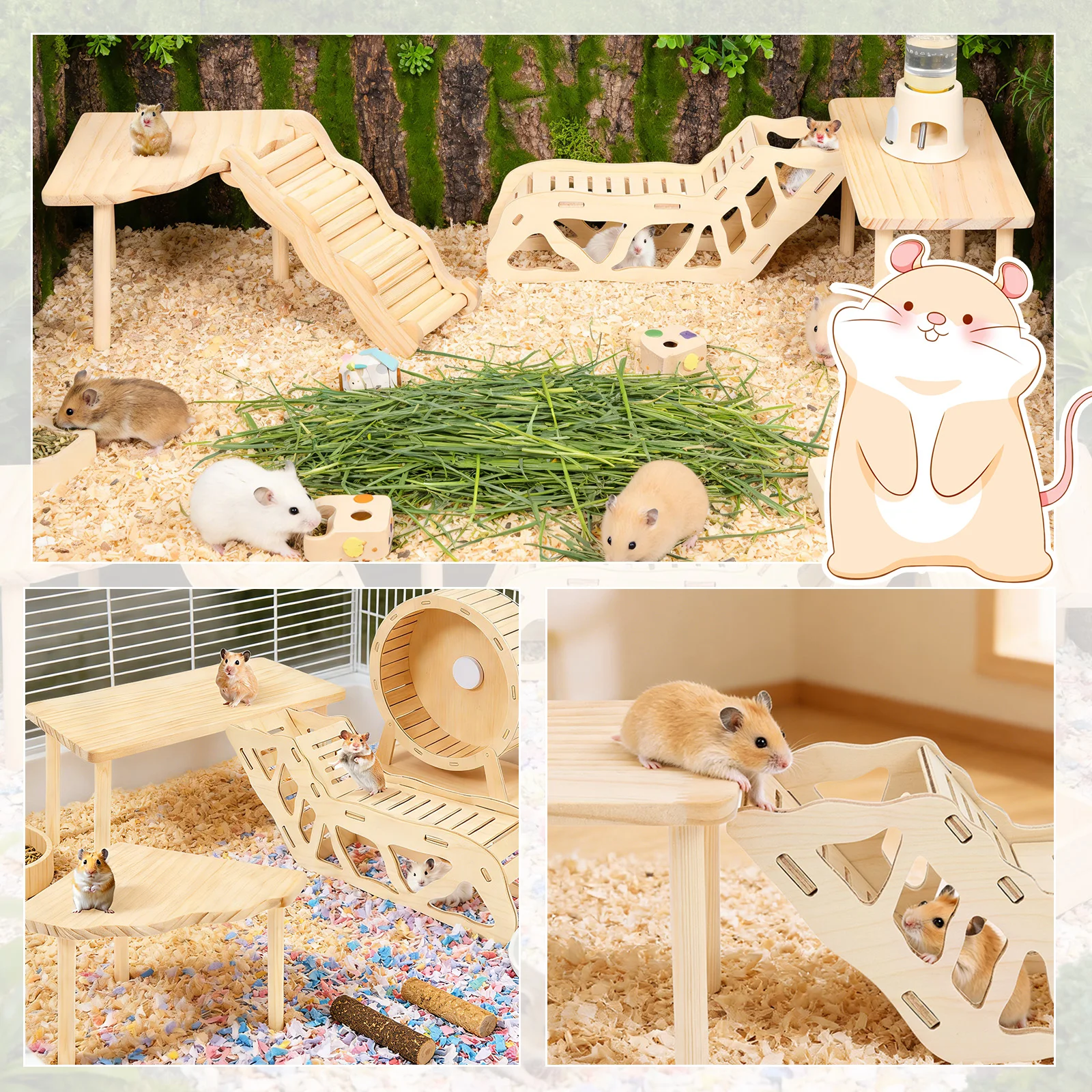 【Wide Range of Uses】Hamster game wood platform is not only suitable for hamsters , but also meets the needs of chinchilla , guinea pigs , golden squirrels , hedgehogs , gerbils and other small pets , providing multifunctional space for various types of small pets for playing , teething , and resting , and helping them to release their energy and stay active
