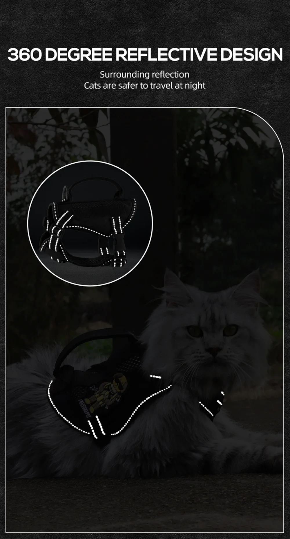 SPECIFICATIONS Brand Name: XLeiPet Color: Black,Khaki Decoration: Other Dropshipper: Yes Feature: LIGHTS,Reflective High-concerned chemical: None Is Smart Device: No Material: Polyester Name: Light Tactical Cat Harness Origin: Mainland China Size: S,M Suit: Cats Type: cats is_customized: No