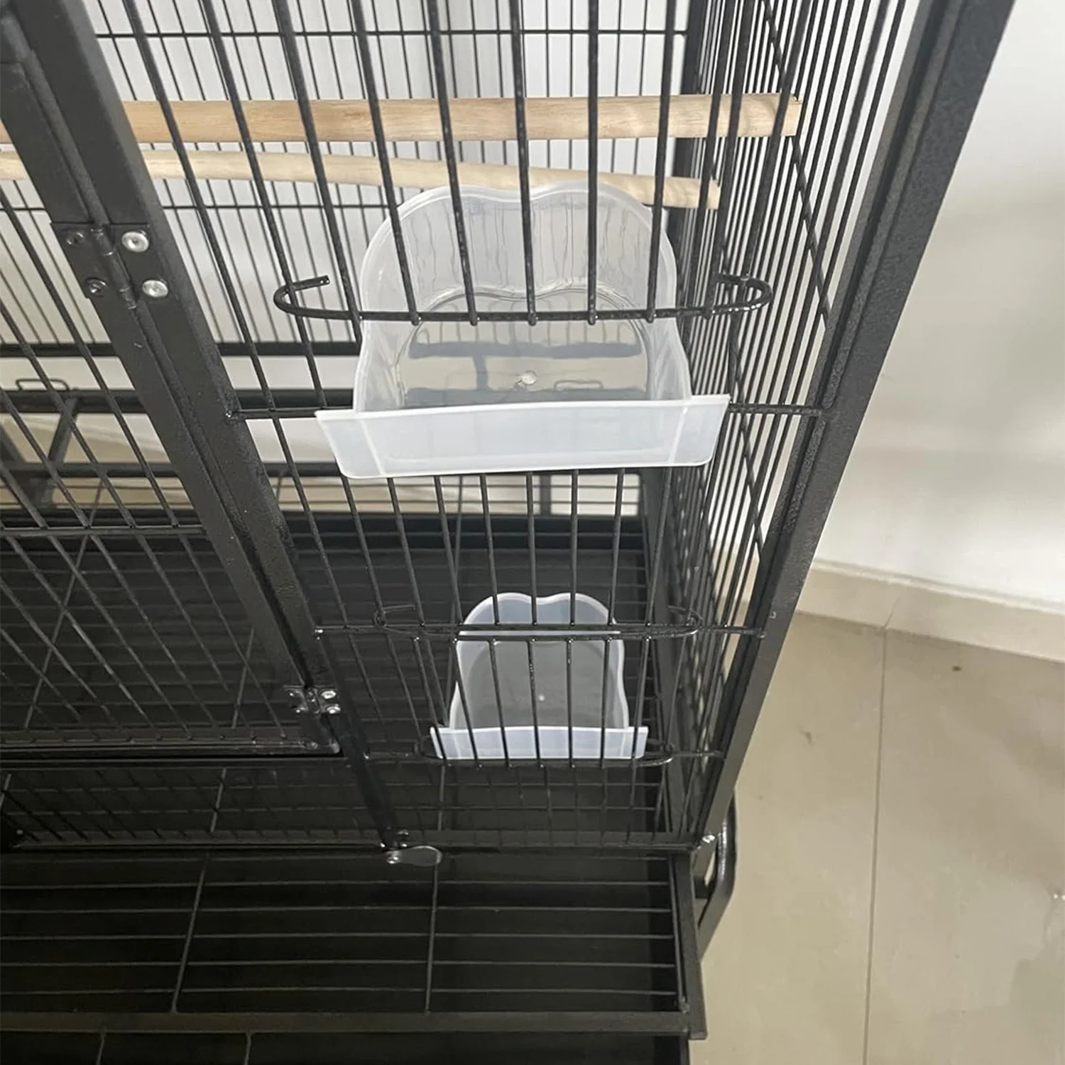 • Durable Wrought Iron Construction: Made from heavy-duty wrought iron, this standing bird cage ensures long-lasting durability and stability, perfect for active birds and daily use.