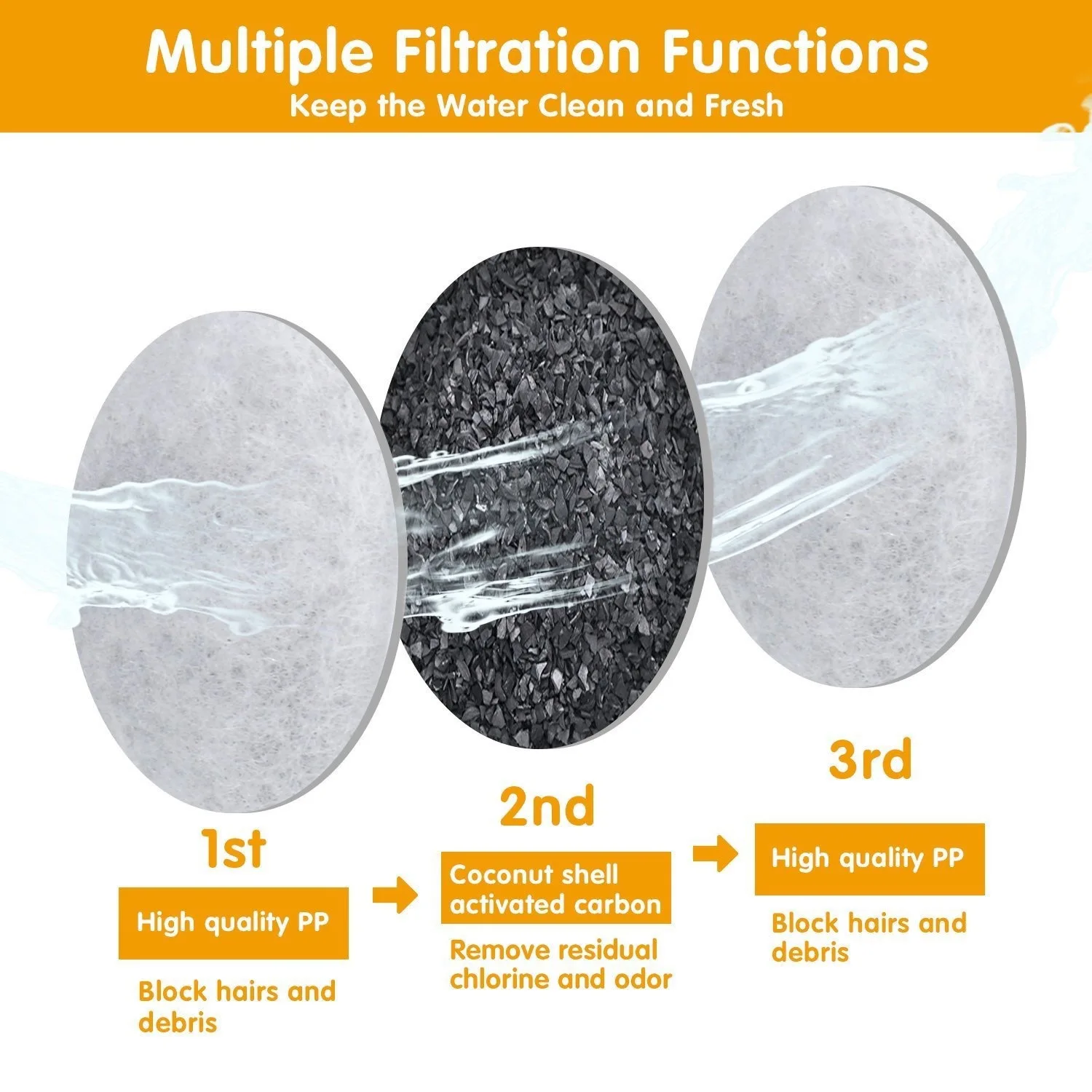 💧 4-layer High-efficiency Filtration: The Cat fountain filters made of high quality double layer cotton, activated carbon and Ion exchange resin. Cat filters fountain can catch hair and debris, filters heavy metals, improve water quality. Every filter individually packaged and sealed to maintain high quality.