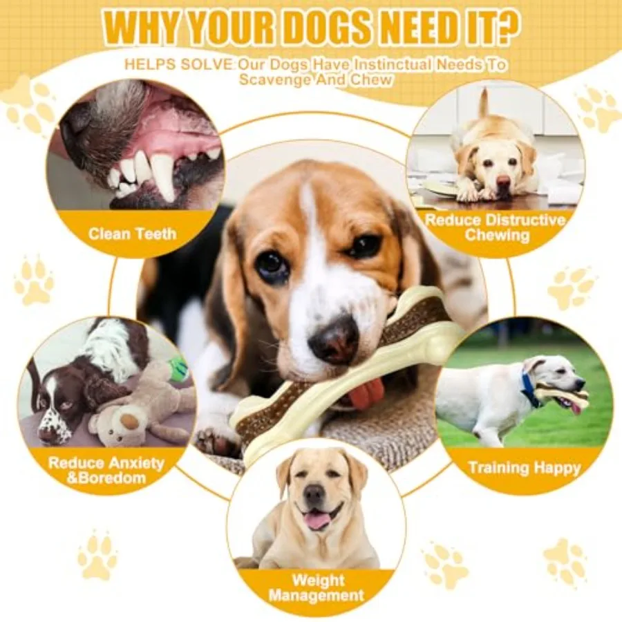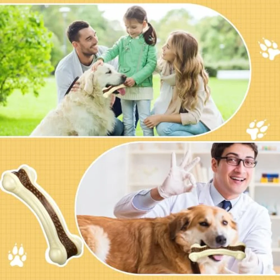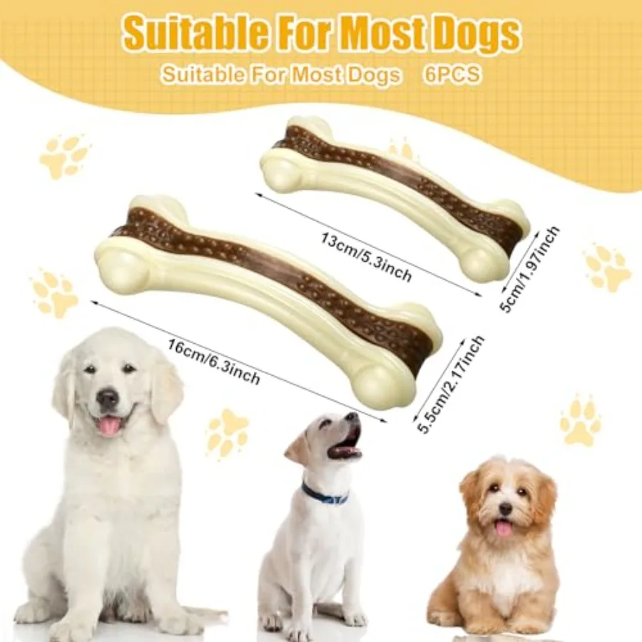 6 Pcs Dog Toys for Aggressive Chewers Christmas Nylon Beef Flavor Bones Tough Puppy Teething Toys Puppy Chew Bones for Large Me
