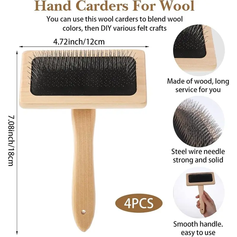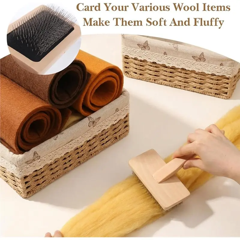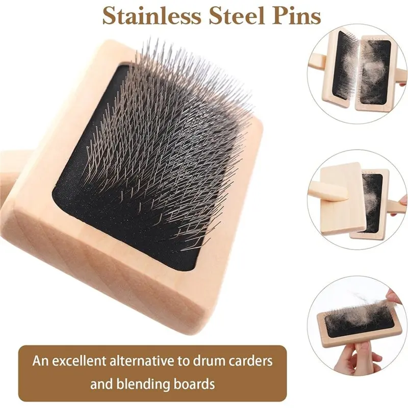 This carding brush excels in multiple roles: perfectly blending colors for felting, fluffing wool for yarn, grooming pet fur to remove loose hair, and revitalizing wool garments, felt rugs, cushions, and craft projects.