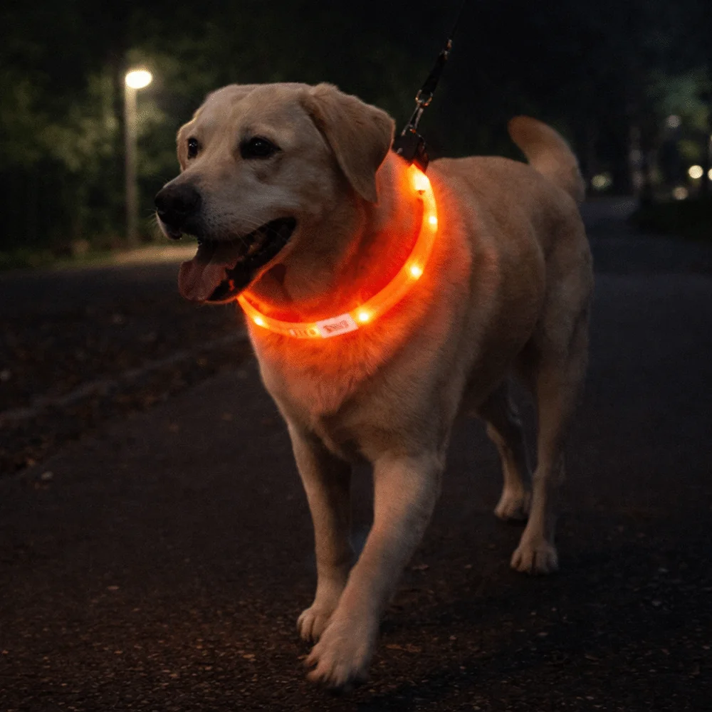 3. Led Dog Collars|Rechargeable LED Technology:Equipped with rechargeable LED, this collar ensures long-lasting visibility for night walks.