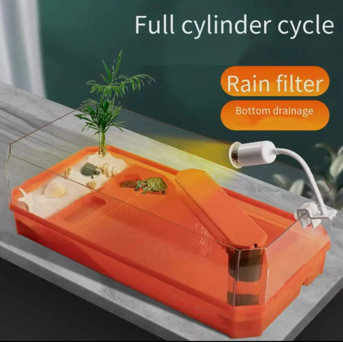 Aquarium turtle tank lazy person water-free breeding box with drying platform ecological turtle tank aquarium accessories 220V