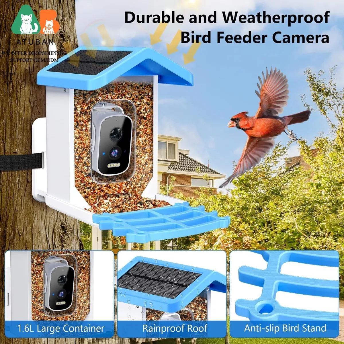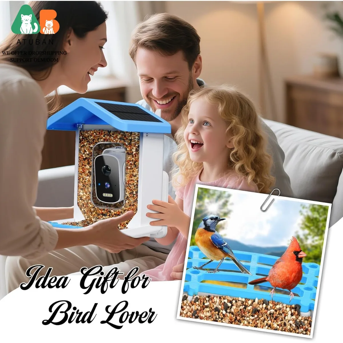 - 【Smart Bird Feeder with Camera】Watch birds visit your bird feeder with camera in real-time, the AI recognition function can recognize over 10,000 bird species, allowing you to enjoy bird watching anytime, anywhere, and enjoy exploring nature.Through the ATUBAN bird feeder camera, watch and enjoy your favorite birds and provide exciting wildlife education for all ages.