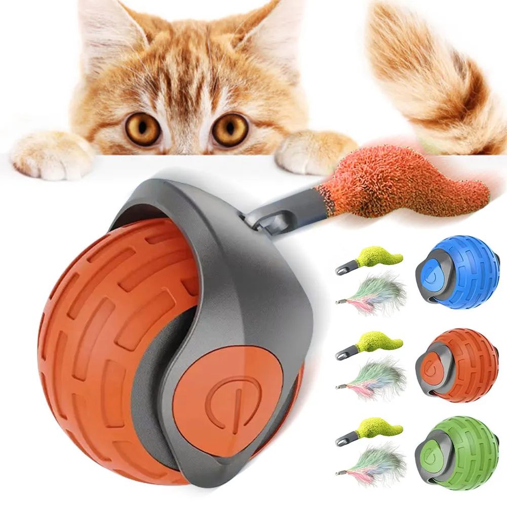 Cat Interactive Ball Toys Rechargeable Automatic Rolling Ball Faux Tail 2 Modes Smart Pet Electric Toy Dog Cat Training Imitate Mouse Kitten Cat Ball