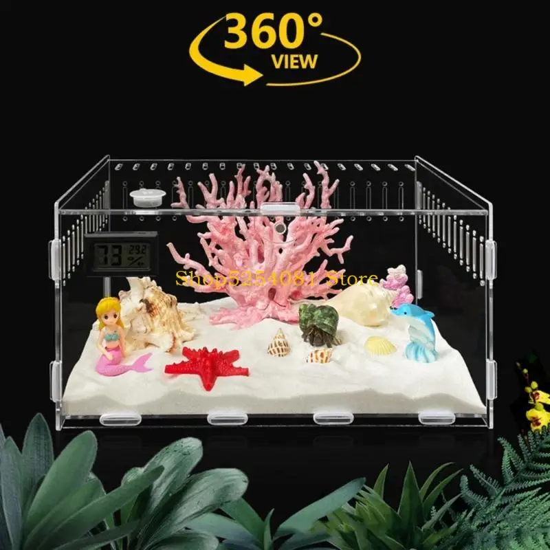 Material: Clear acrylic material, clear and bright. 360-degree full views, so that you can see the behavior of small pet.