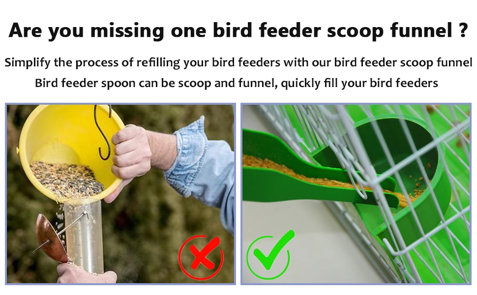 Practical Design:Simplify the process of refilling your bird feeders with our bird feeder scoop funnel. Bird feeder spoon can be scoop and funnel, quickly fill your bird feeders.