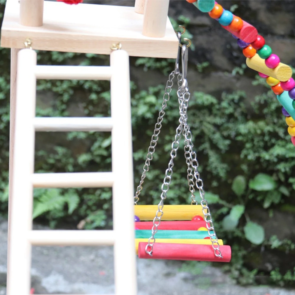 Fun and Exciting Activities: The bird playground is equipped with vibrant ladders, trays, colorful swings, and windmill toys. These eye-catching toys are designed to quickly engage birds, offering them an enjoyable recreational space.