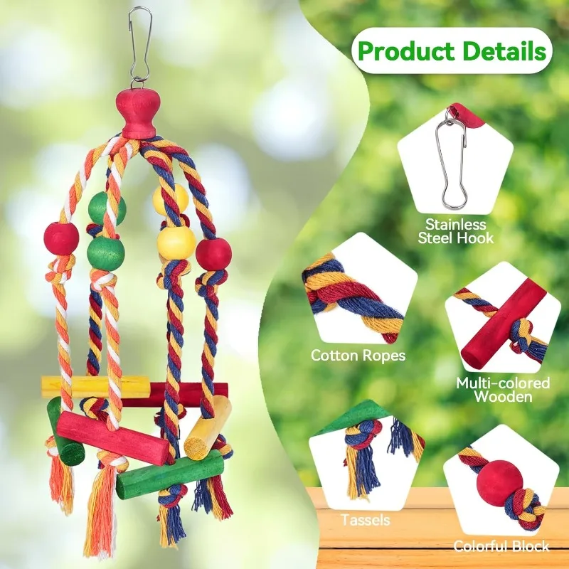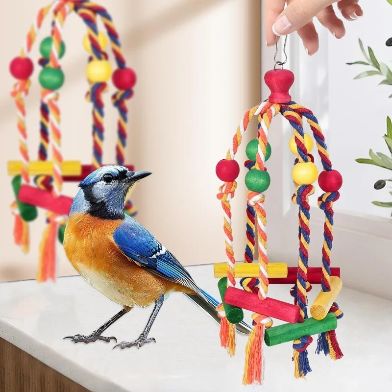 Bird Toys Parrot Toys Cotton Rope Colorful Beads Wooden Blocks Gnawing Strings Relieve Boredom Relieve Biting Hair Bird Supplies