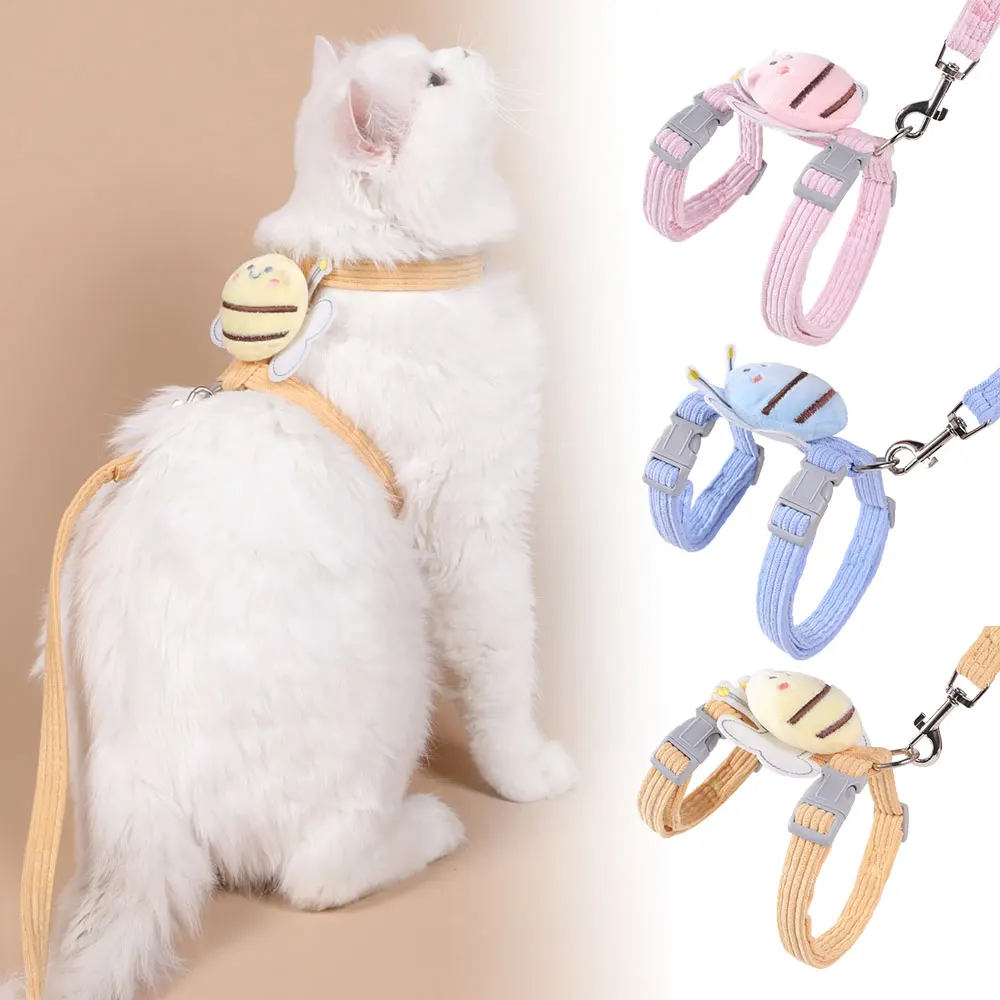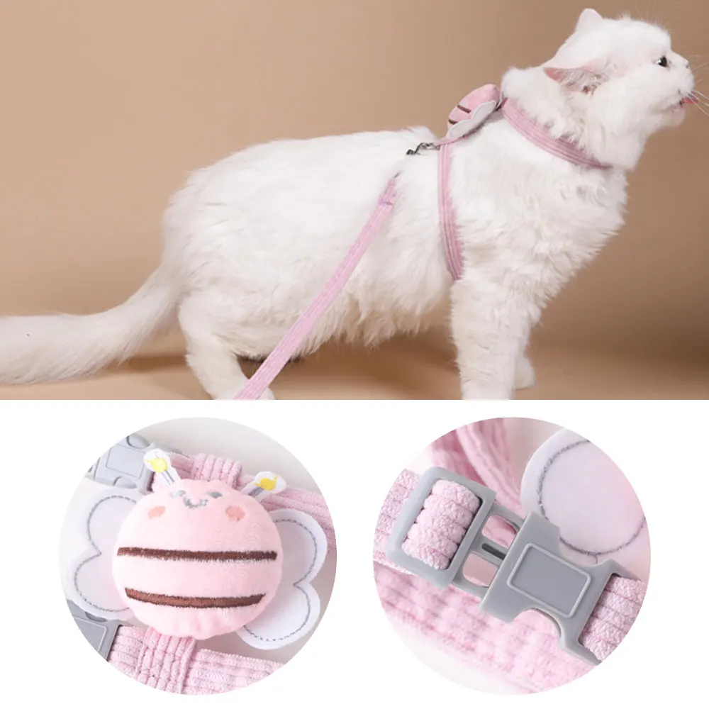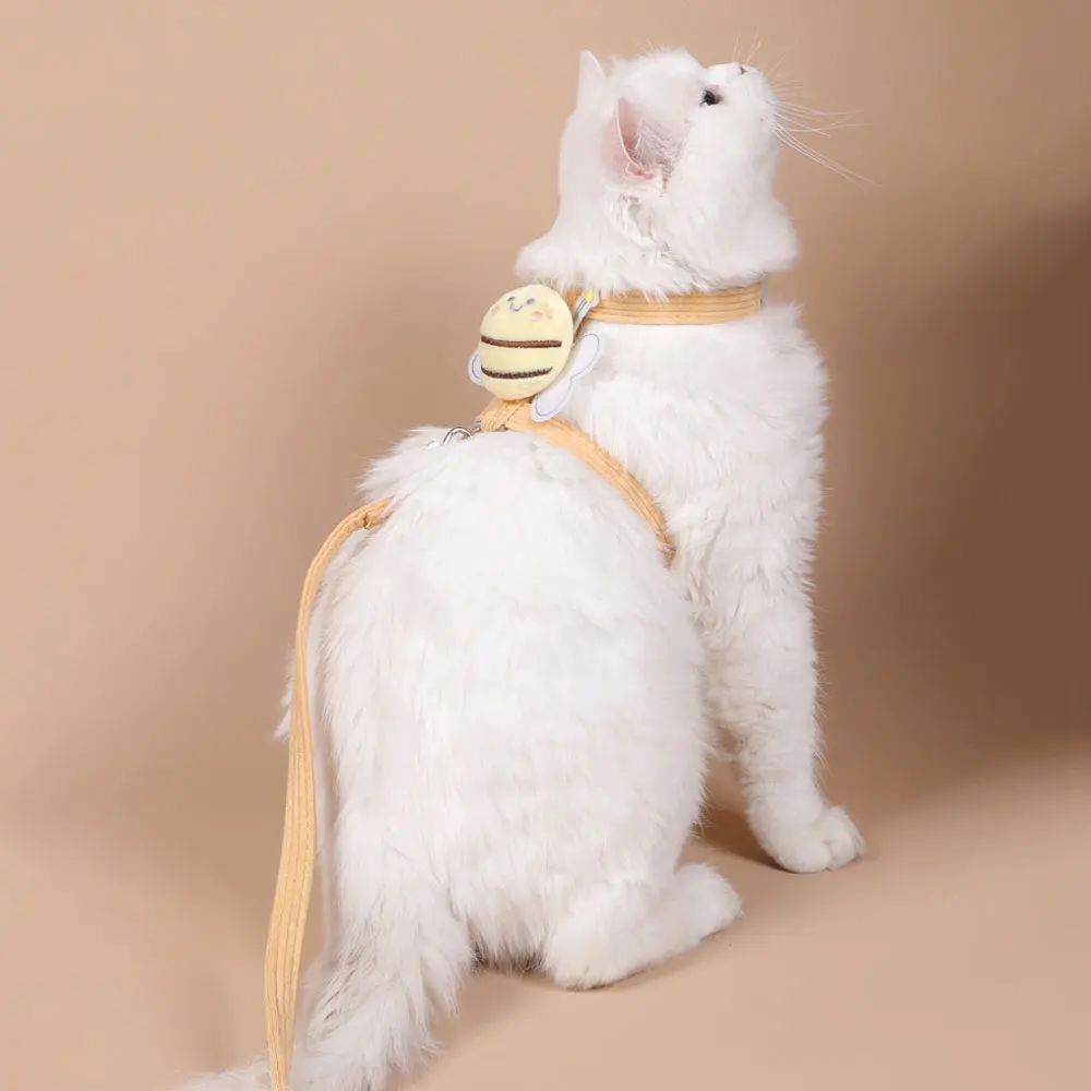2.2-IN-1 Cat Leash and Harness Set – This cute bee and check strap design leash and harness set combines a cute design with an adjustable harness,