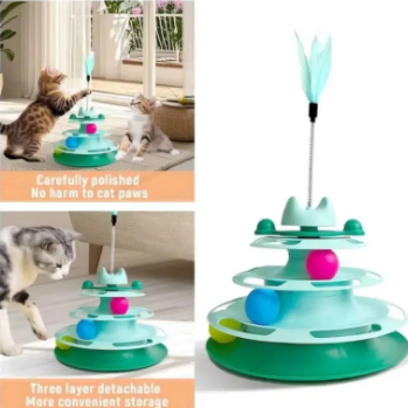 Attribute: 4-Layer Rotating Cat Turntable,Cat Self-Playing Boredom Relief Toy,Indoor Interactive Puzzle Cat Toy,Toy for Kittens & Adult Cats,Bite Resistant Teething Cat Toy,Interactive Track Ball Cat Toy,Pet Teaser Entertainment Toy,Cat Intelligence Play Supplies