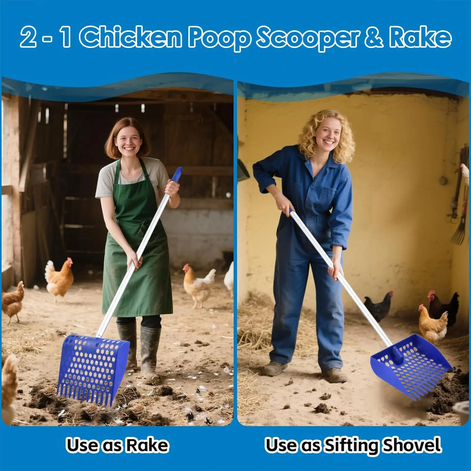 1.Hygiene Made Effortless: Designed with an integrating rake and shovel this coop cleaner gathers chicken waste effectively and sifts out debris making daily maintenance quick and easy