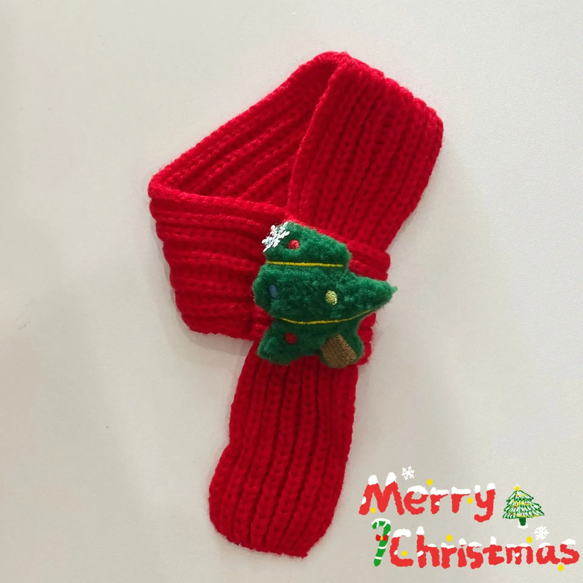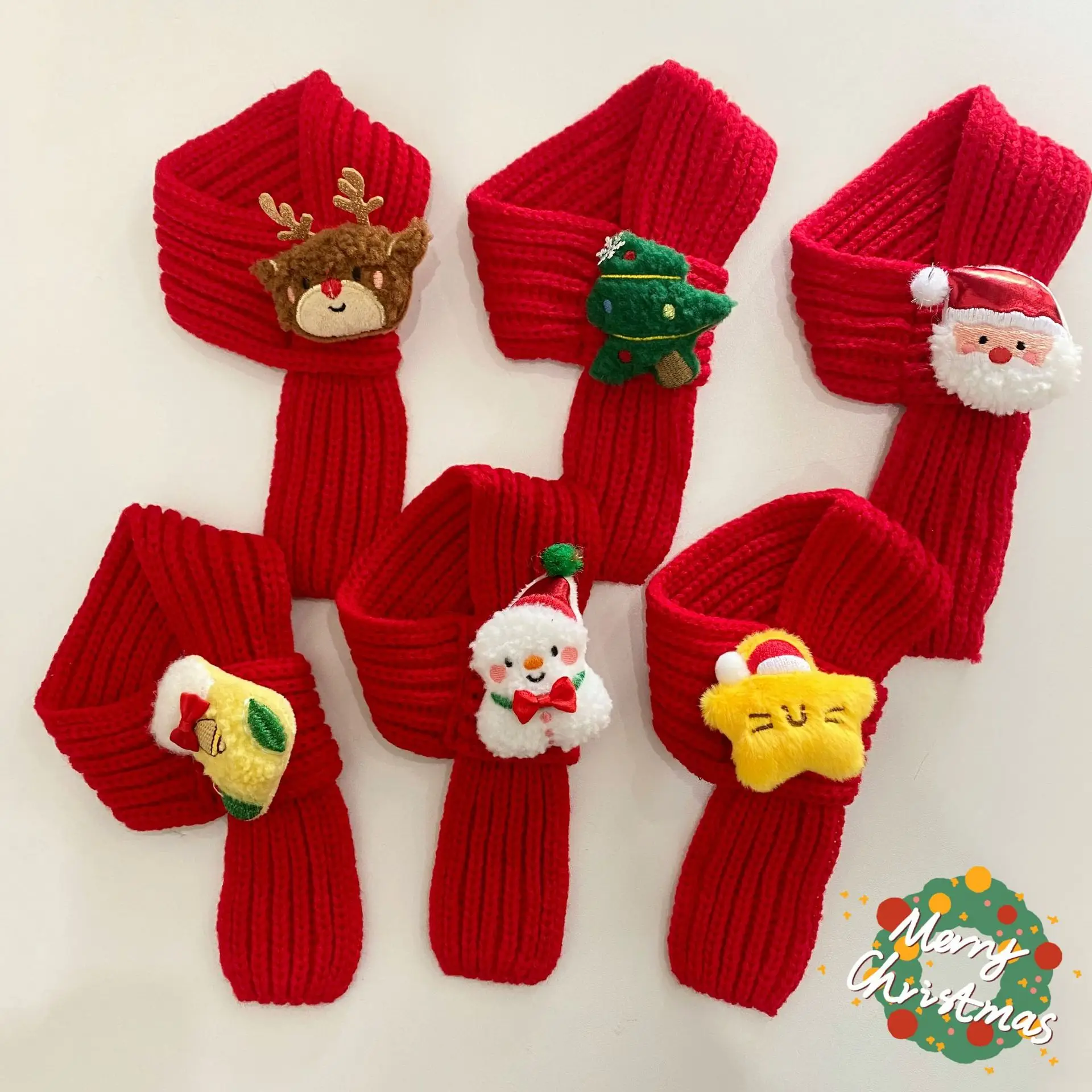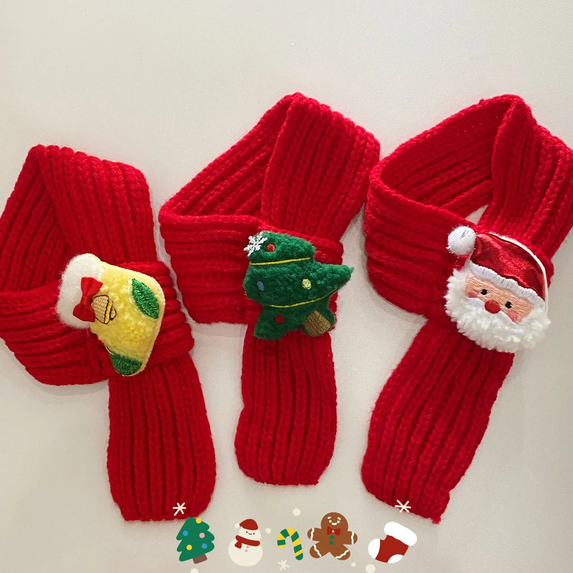 Christmas Pet Knit Scarf for Cats Cute Elk Santa Snowman Xmas Decor Warm Red Pet Neckwear