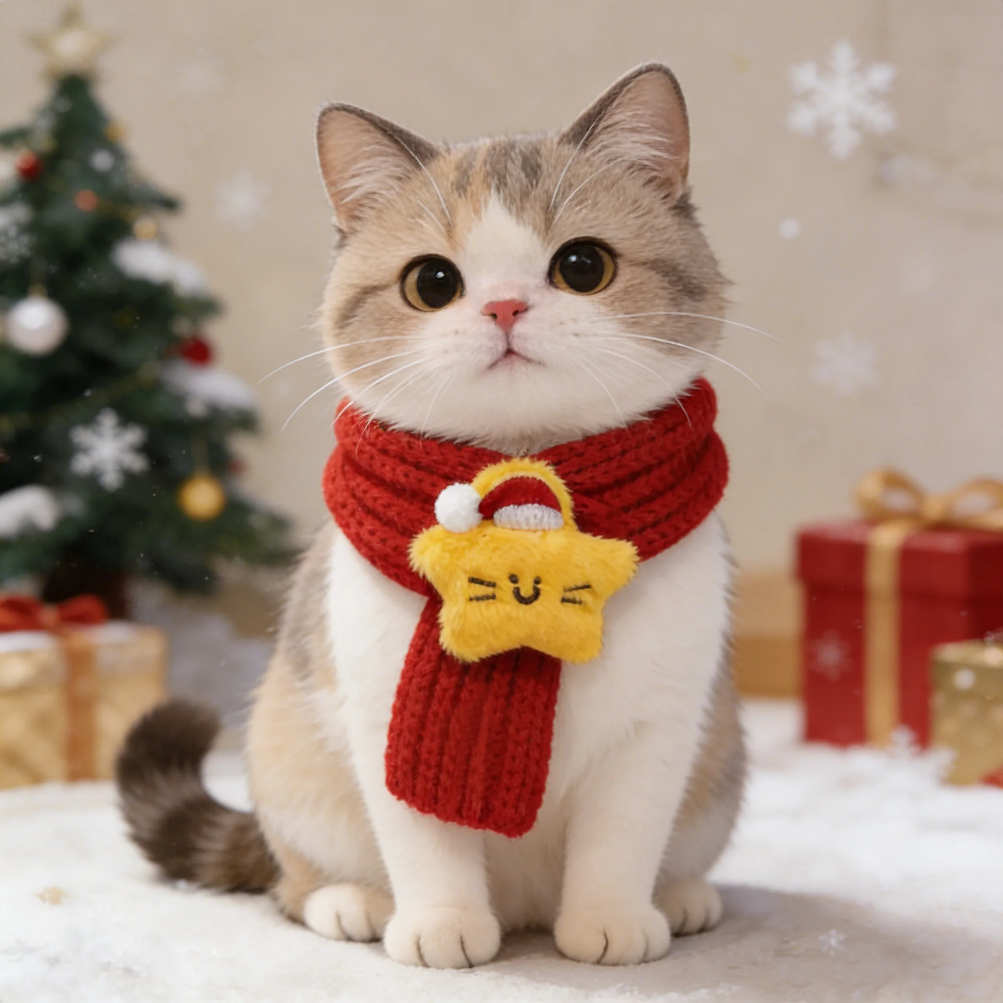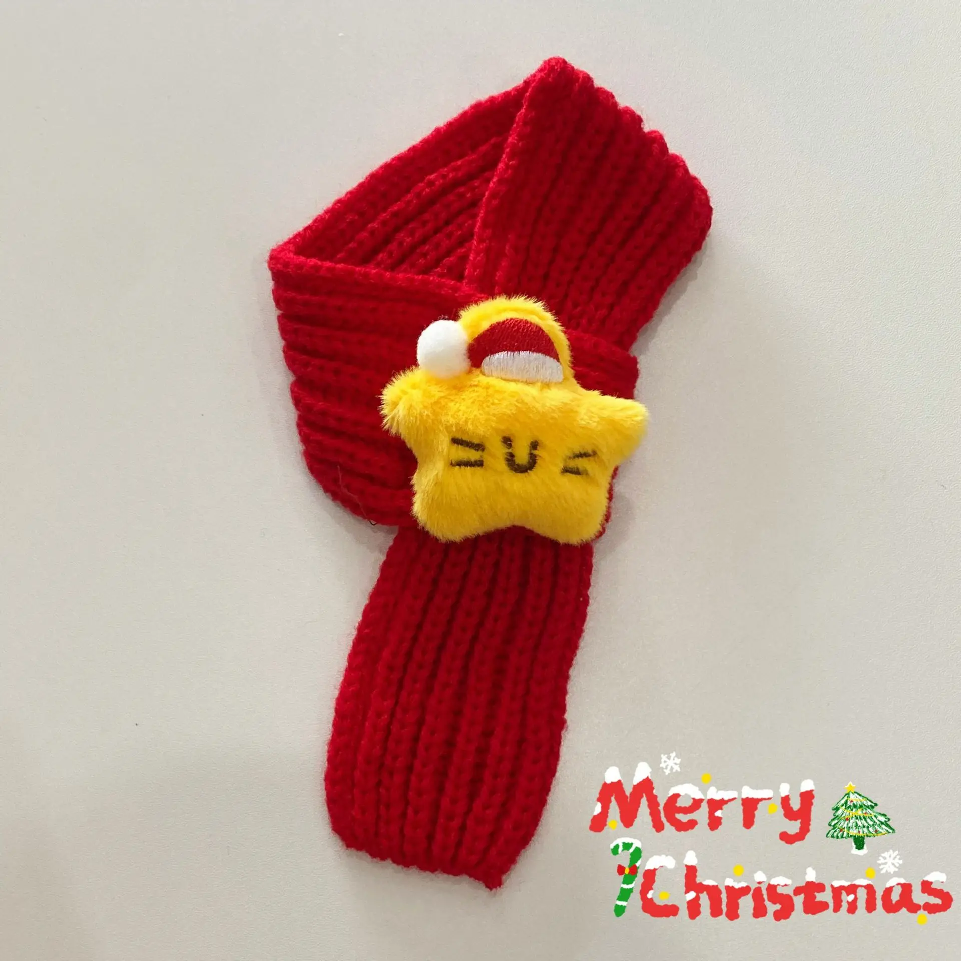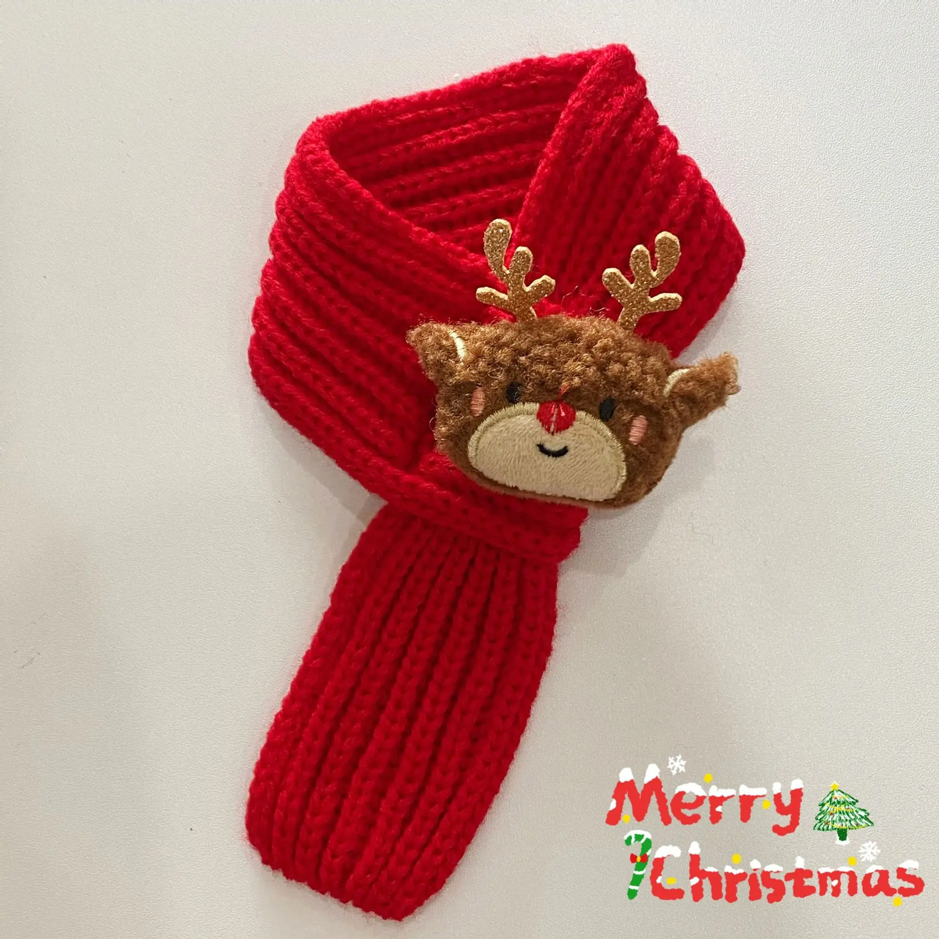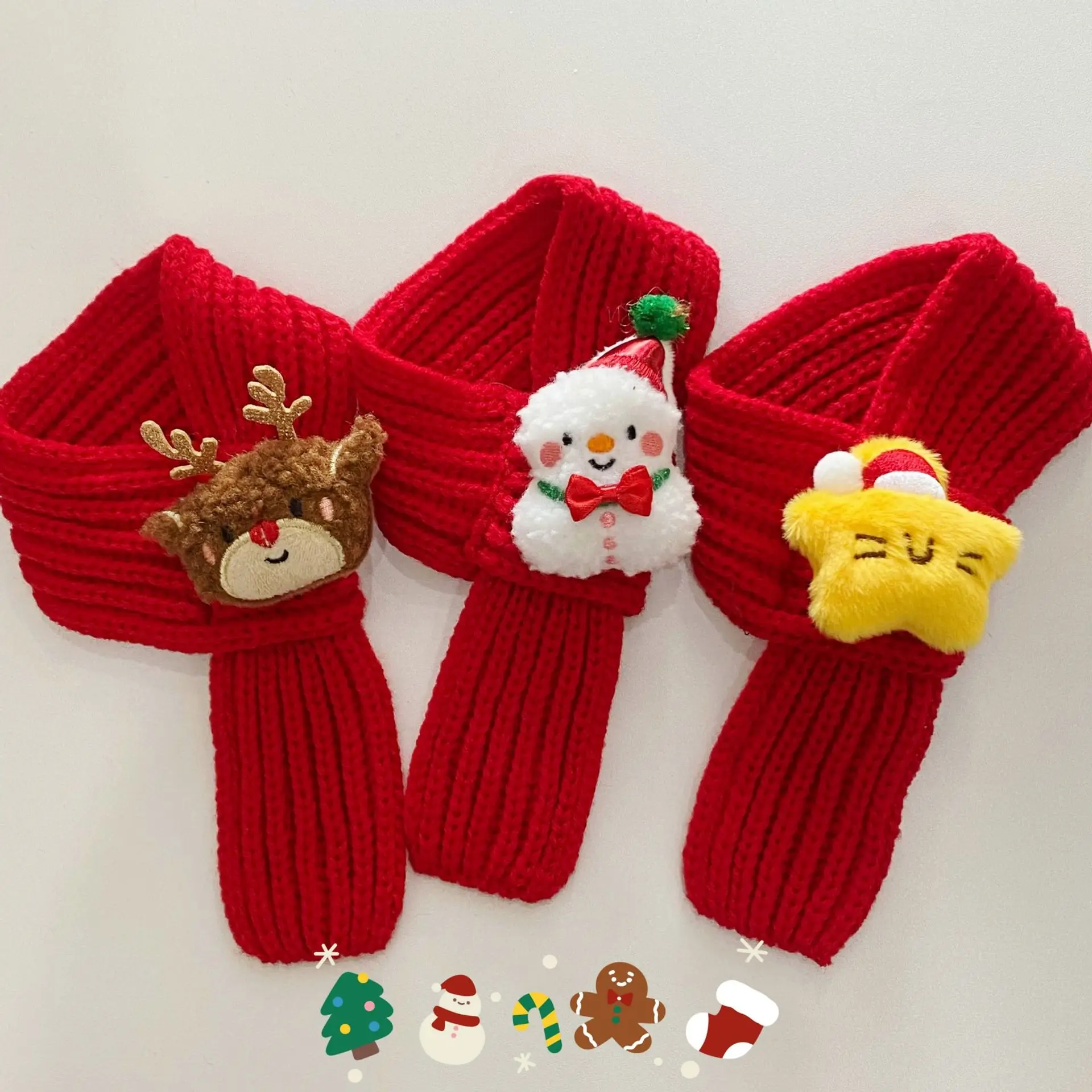 Christmas Pet Knit Scarf for Cats Cute Elk Santa Snowman Xmas Decor Warm Red Pet Neckwear
