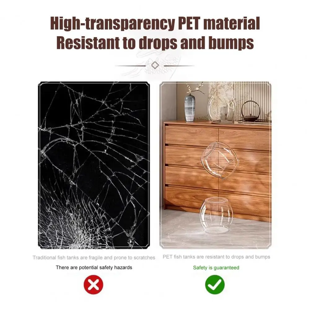 Durable PET Construction: Crafted from high-quality transparent PET plastic, this fish bowl boasts exceptional brightness and durability, ensuring a safe and anti-fall design for peace of mind.
