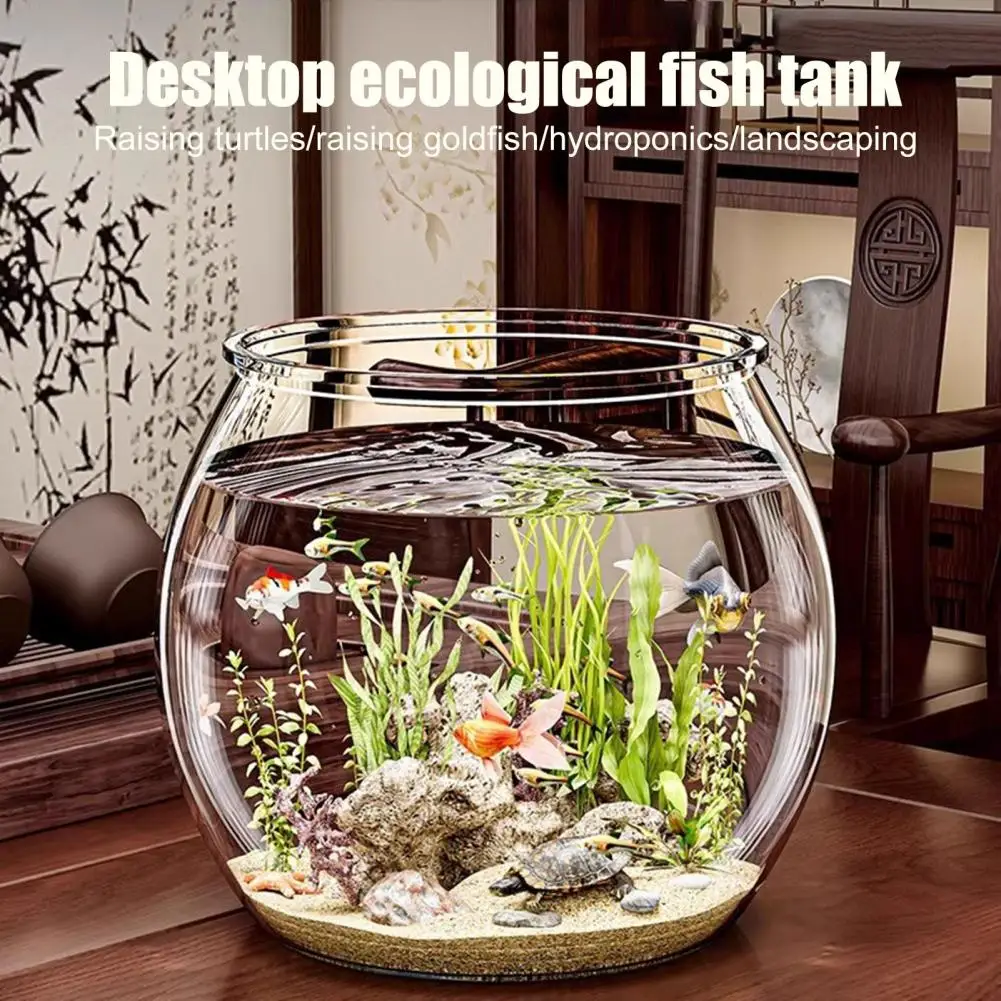 Introducing the high-quality transparent PET plastic fish bowl, a durable and safe option for your aquatic pets. This unique tank boasts a bright design that is both eye-catching and sturdy, ensuring it can withstand accidental falls. Its small round shape makes it perfect for showcasing betta fish, angelfish, and other ornamental species from various angles in any room.