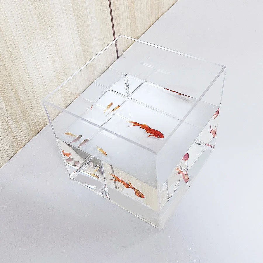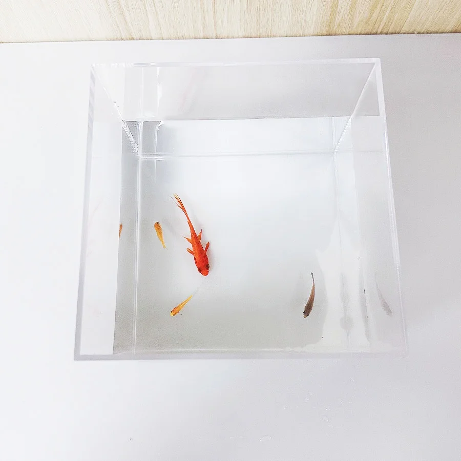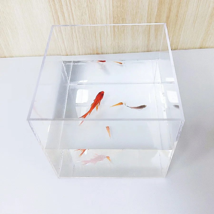 SPECIFICATIONS Aquariums Type: Fish Bowls Brand Name: NONE Choice: yes High-concerned chemical: None Material: acrylic Model Number: BJ-FT01 Origin: Mainland China Type: fish clear transparent acrylic mini table turtle, shrimp, goldfish,seaweed aquaculture tank small table fish tank size of fish tank H15.1*W15.1*L15.1cm