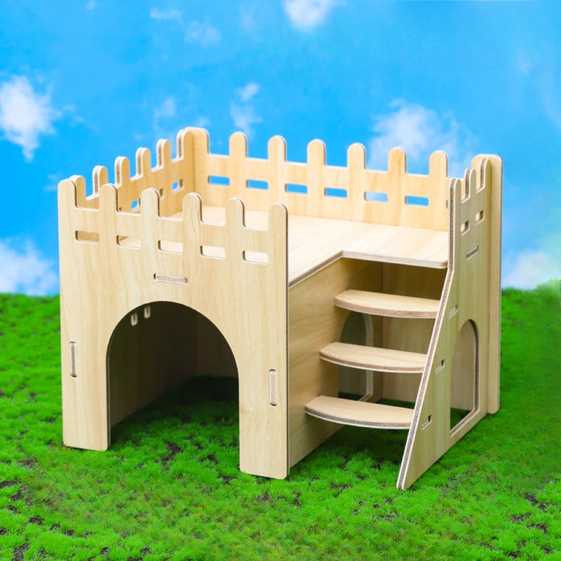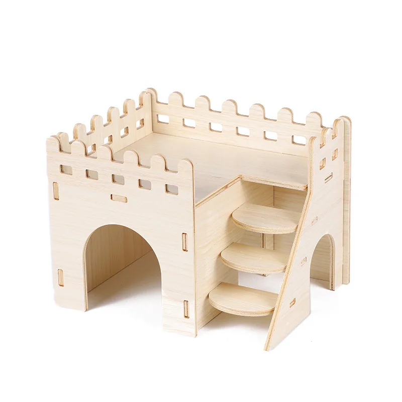 Creative Hamster Nest Wooden Fence Villa Pet Home Supplies Comfortable Sleeping Nest Simple Style Solid Color House Villa