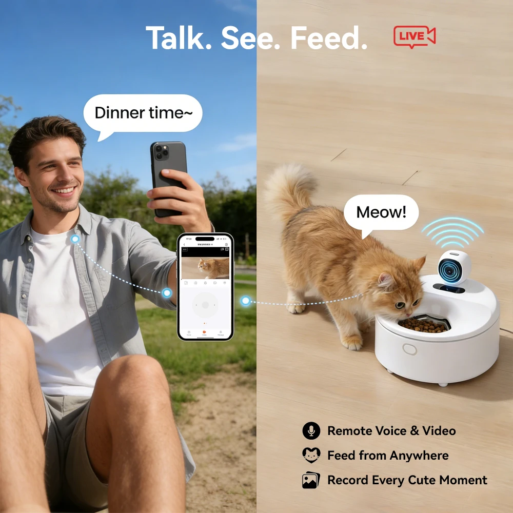 DRH Developed Refrigerated Automatic Cat Wet Food Feeder pairs semiconductor cooling & precision heating with a dishwasher-safe stainless-steel bowl to preserve wet food quality for days. App + camera control enables scheduled portioning, remote “Feed Now,” two-way voice & recorded messages, and real-time alerts from bowl-level and presence sensors. Safety features include anti-pinch lid mechanics and isolated thermal components for quiet, reliable operation. OEM/ODM ready with firmware support. Built for distributors and retailers who need a high-margin, premium smart feeder.