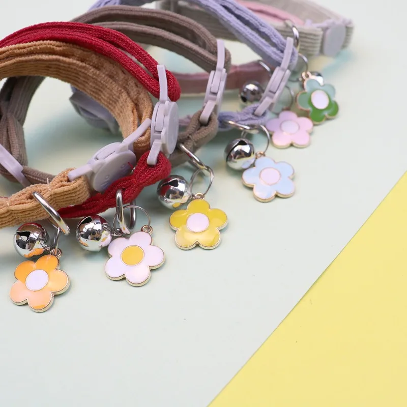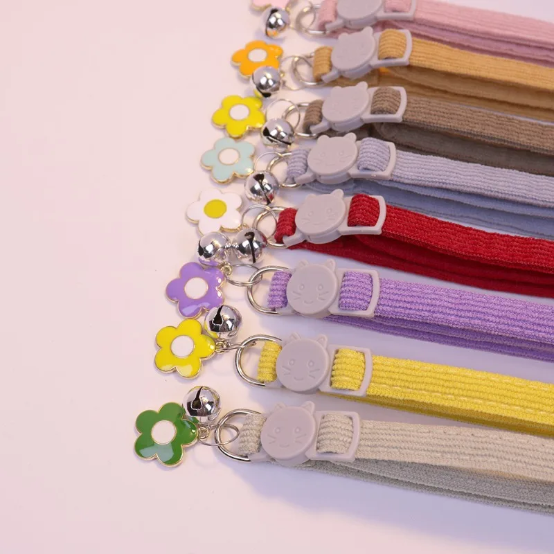 Customize Name Cat Collar Breakaway Corduroy Flower Personalized Id With Bell Pet Products Small Adjustable Kitten Supplies