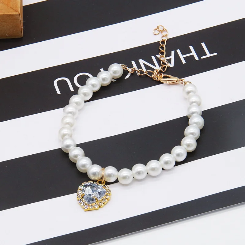 Cute Fashion Pet Supplies Cat Accessories Necklace Pearl Crystal Pet Collar Pearl Beaded Solid Crystal Pendant Pet Products