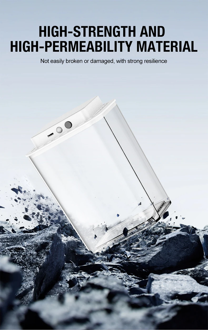 Features: Intelligent light sensing, panoramic high transparency cylinder body, top feeding hole design, compact and convenient, can also be used as a display cabinet
