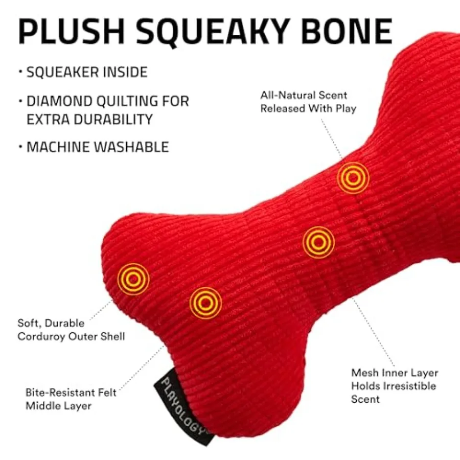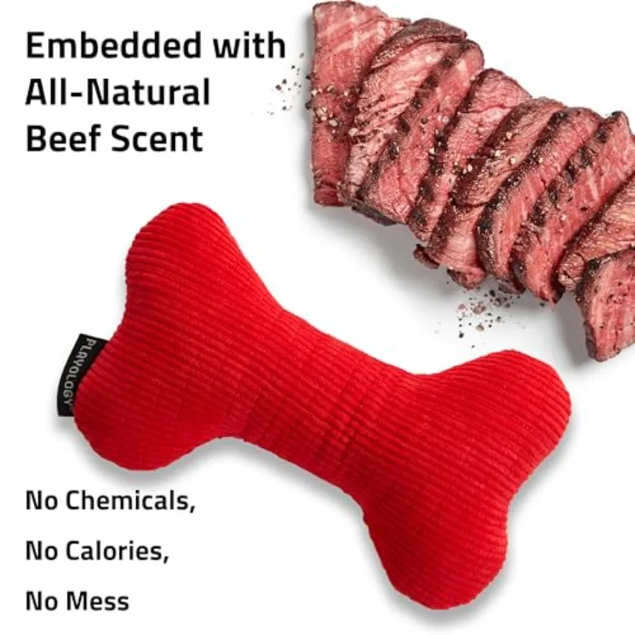 Dog Toys Plush Squeaky Bone and Squeaky Ball Bundle Jumbo Beef Scented Toy – Easy to Clean and Made from Non Toxic Mate
