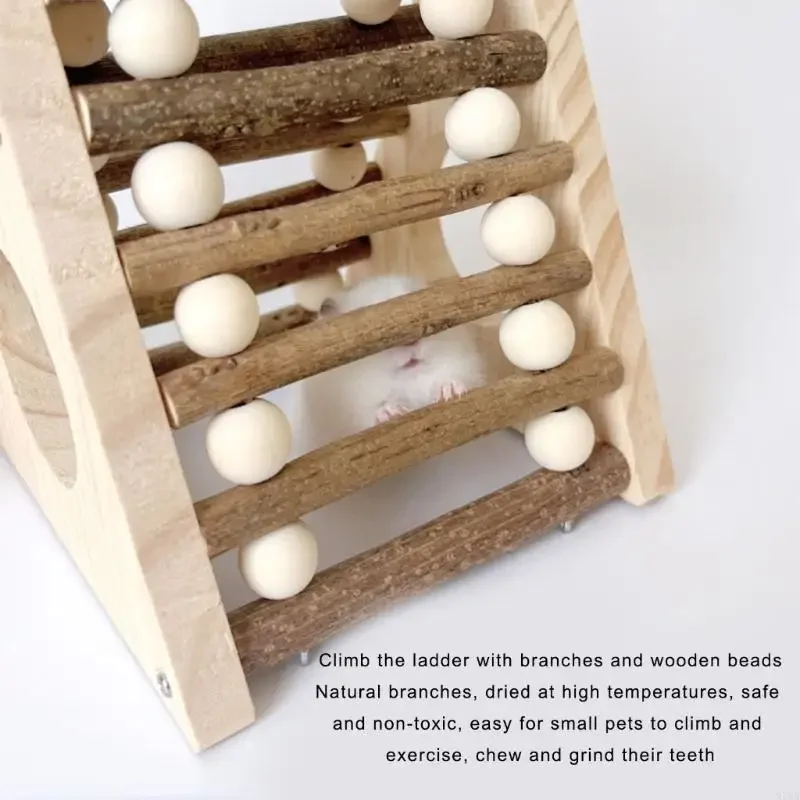 Features a sanded branch ladder supporting up to 5kg, for dwarf hamsters, gerbils, hide, and exercise in their wooden trapezoidal habitat.