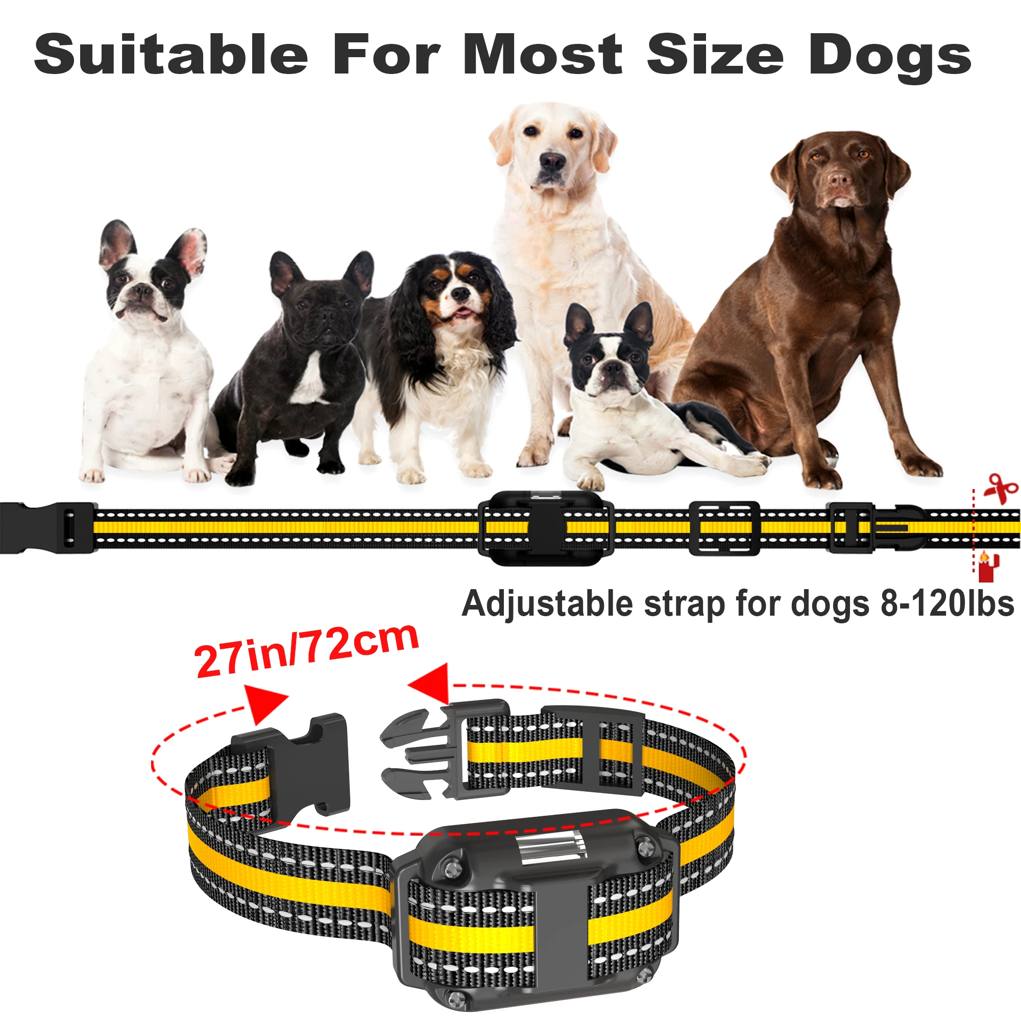 Adjustable collar size: the max adjustable length is up to 72cm, suitable for all size dog.