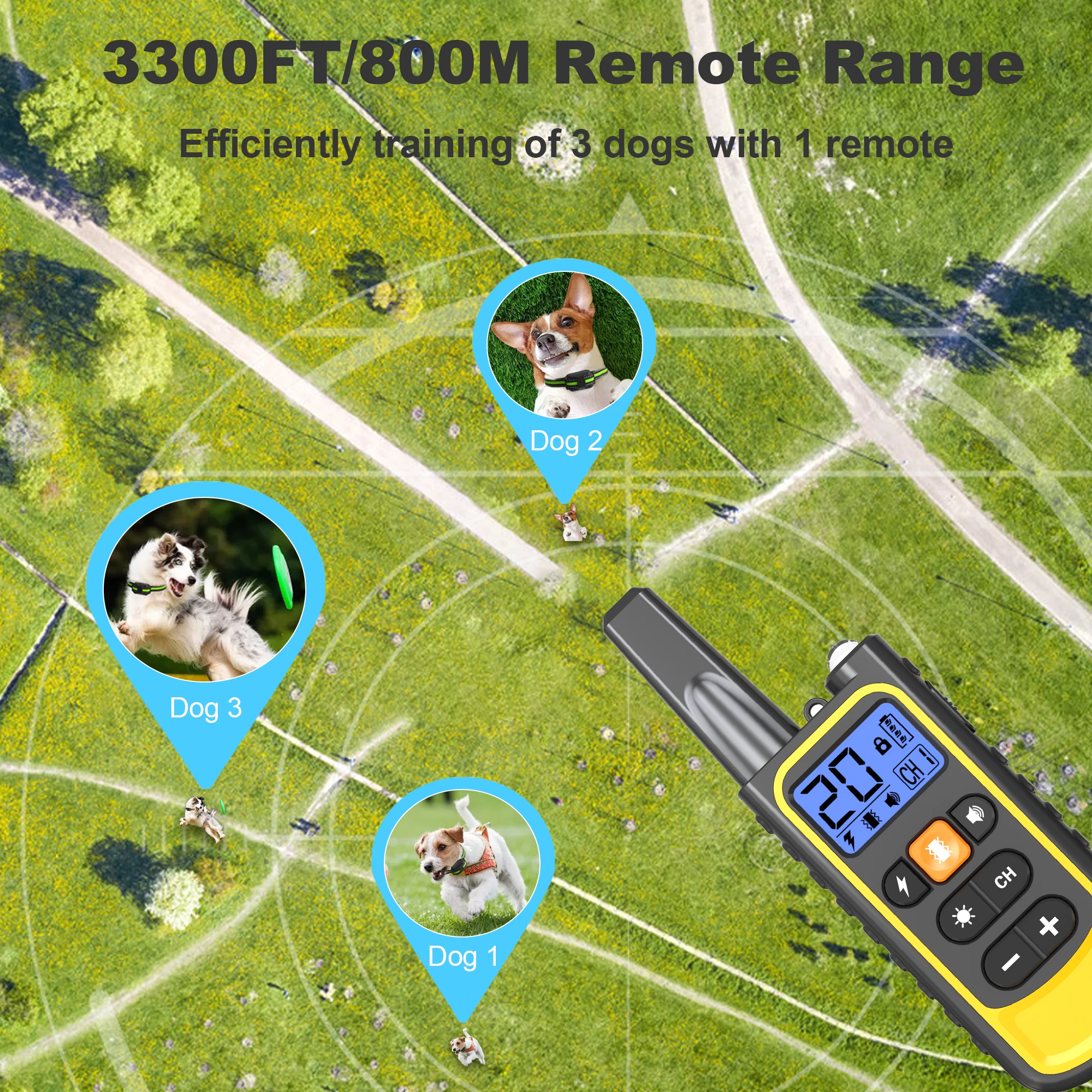 Electric Dog Training Collar is fully waterproof, ensuring durability and safety in all weather conditions Rechargeable Battery Equipped with a rechargeable battery, this collar offers convenient and sustainable use without frequent replacements.