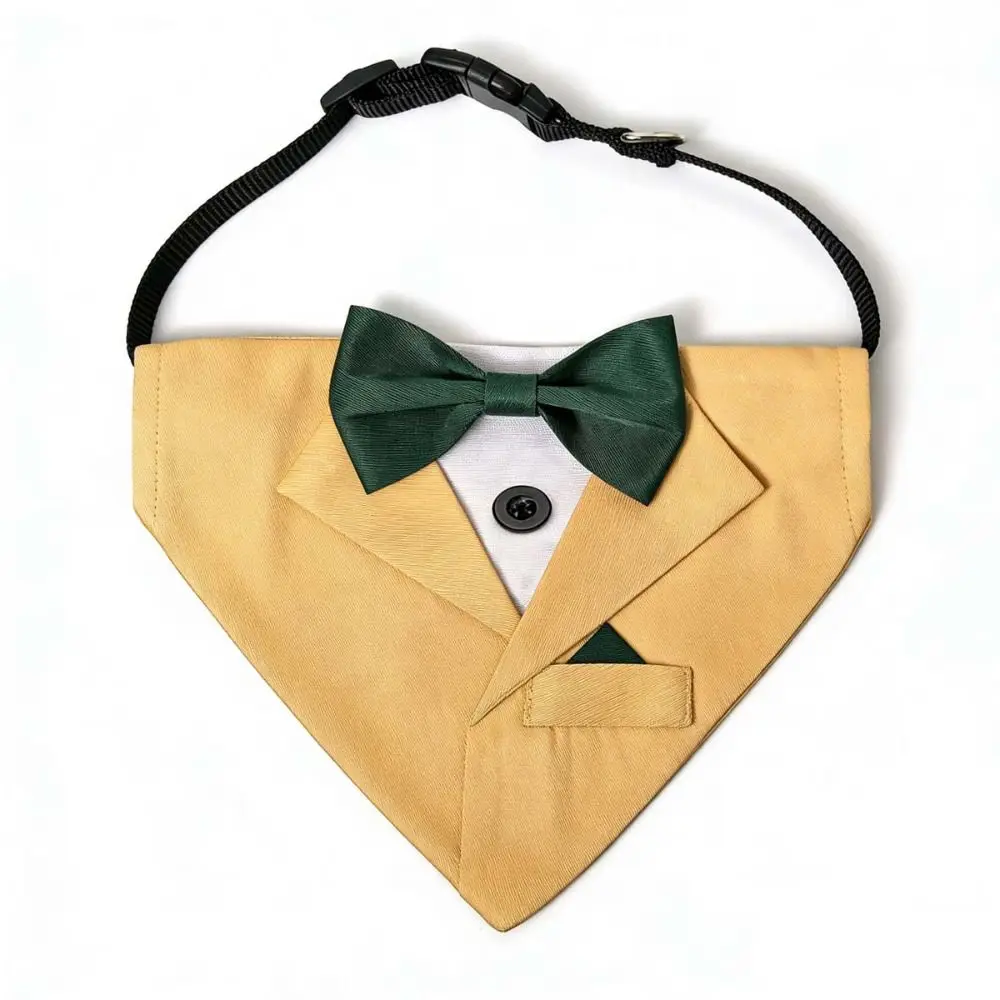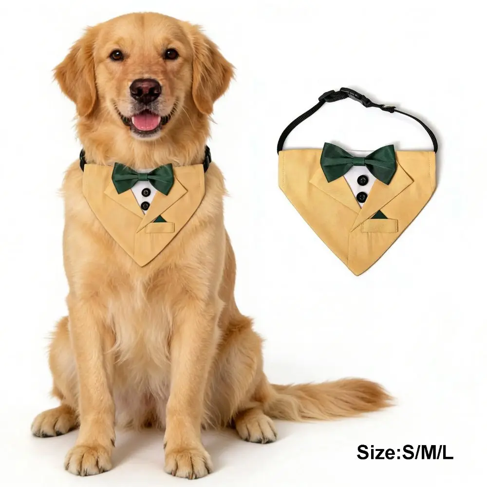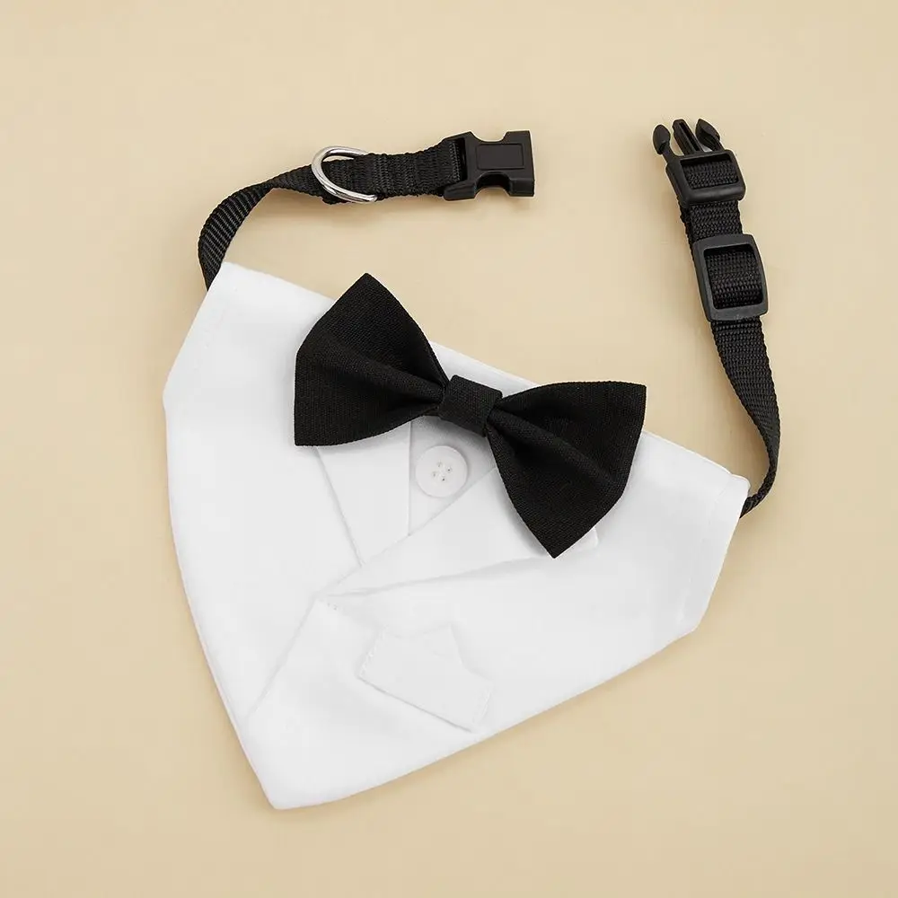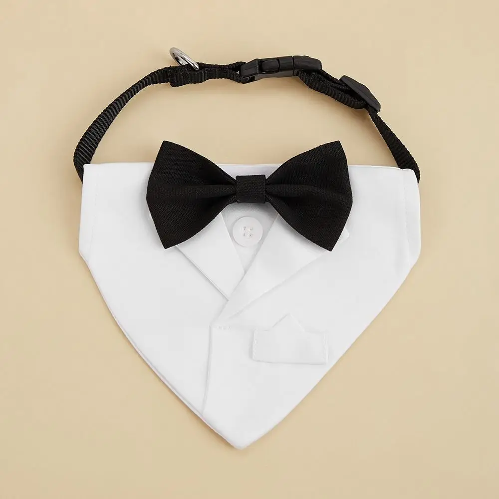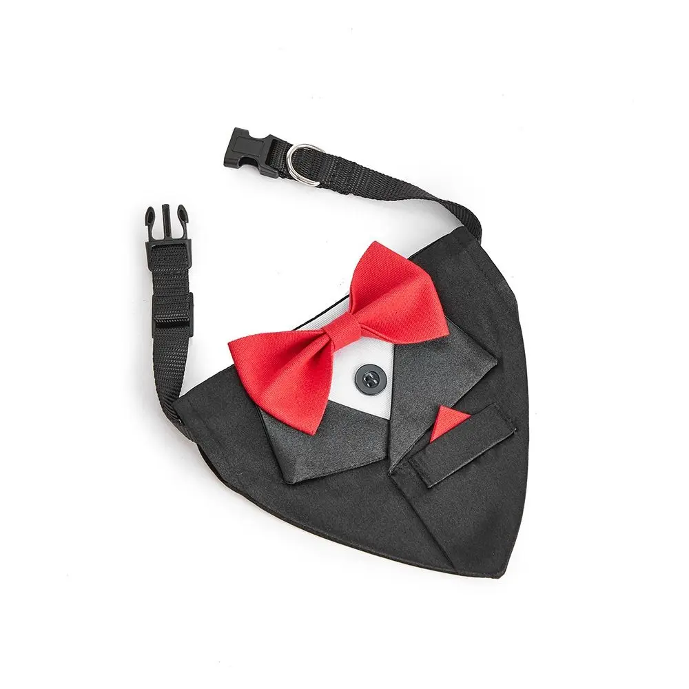 – Wedding Tuxedo Bandana: Formal dog tuxedo bandana dog collar costumes with a black bow tie is absolutely adorable and shining. Dog tux bandana is designed for wedding, engagement, Valentine’s Day, Christmas, New Year’s, photo shooting, Halloween, Birthday party grand holidays or just daily use. It makes your lovely dog elegant and extra handsome, like a gentleman.