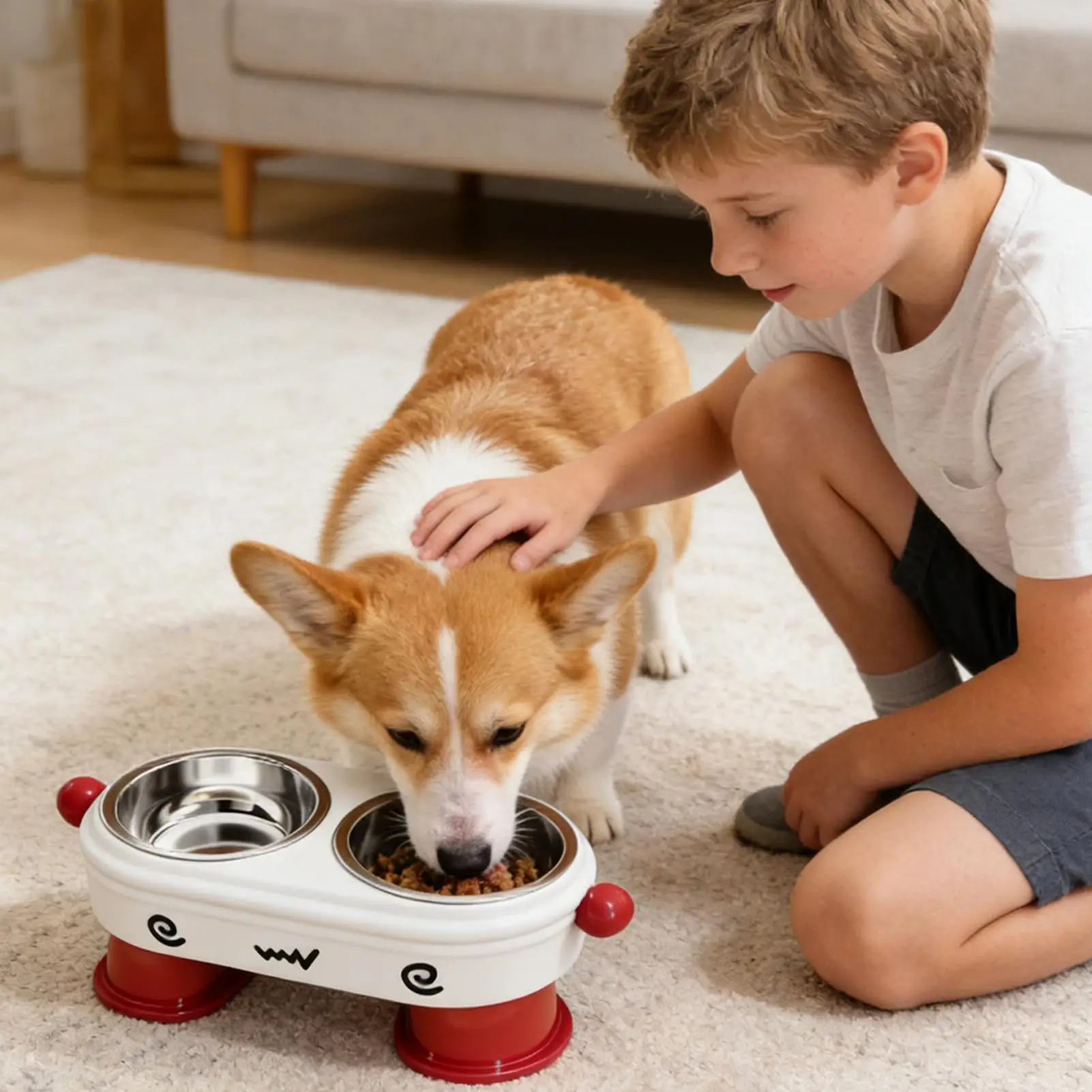 2.Stable Elevated Dining: The raised dog bowl is equipped with an anti-slip base that prevents movement across floors, offering enhanced stability to avoid scattered kibble and create a more controlled eating environment for your furry companion