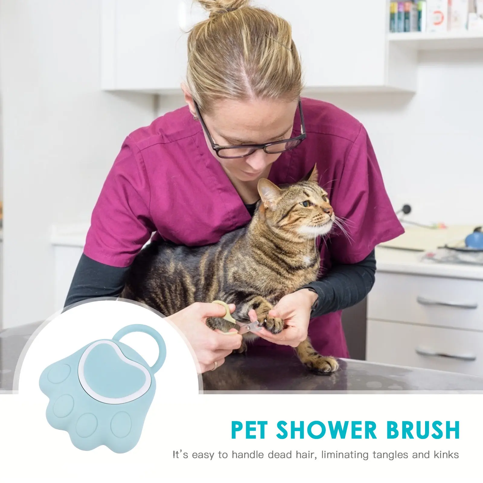 – Fine workmanship, paw-shaped design, lovely and elegant, portable, convenient and practical Pet Shower Brush
