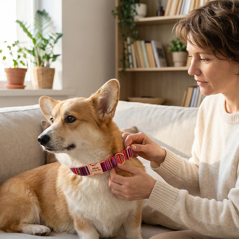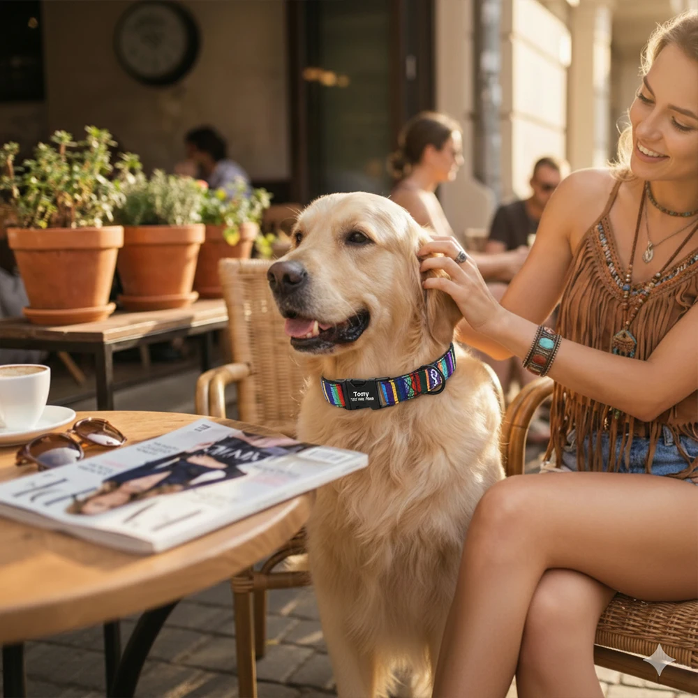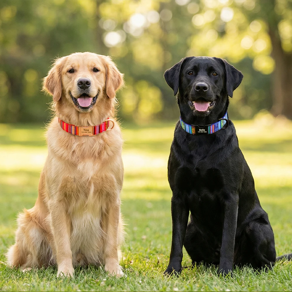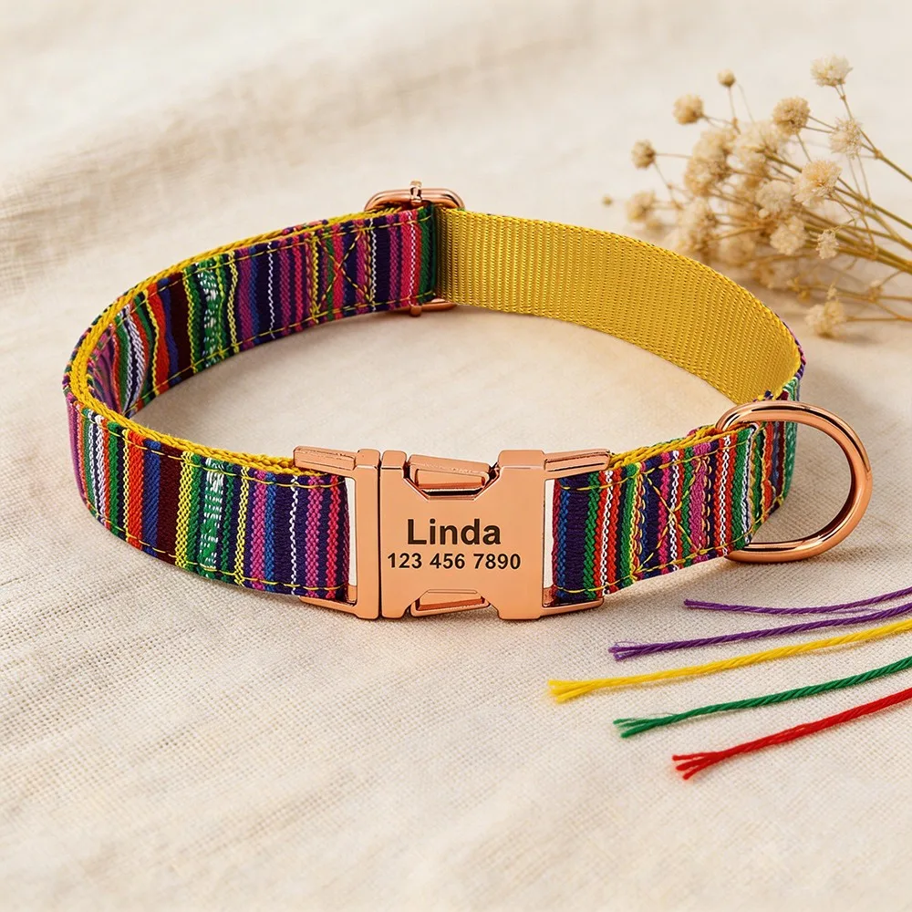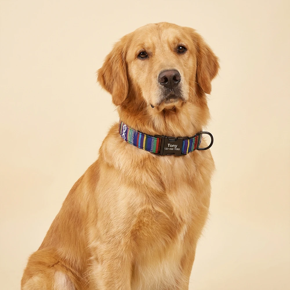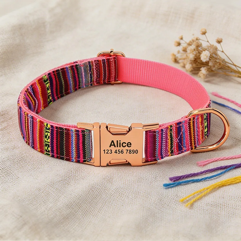 Ethnic Style Personlized Nylon Dog Collar Name ID Metal Buckle Engraved Free Adjustable for Small Medium and Large Dogs