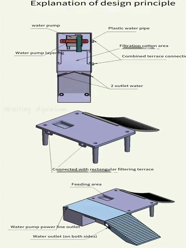 SPECIFICATIONS Brand Name: NONE Choice: yes Material: Plastic Model Number: 666 Origin: Mainland China Reptile Decorations Type: Hideouts semi_Choice: yes Four-legged three-dimensional climbing platform without water pump filter Stair climbing platform with filter water pump, operating voltage 220V