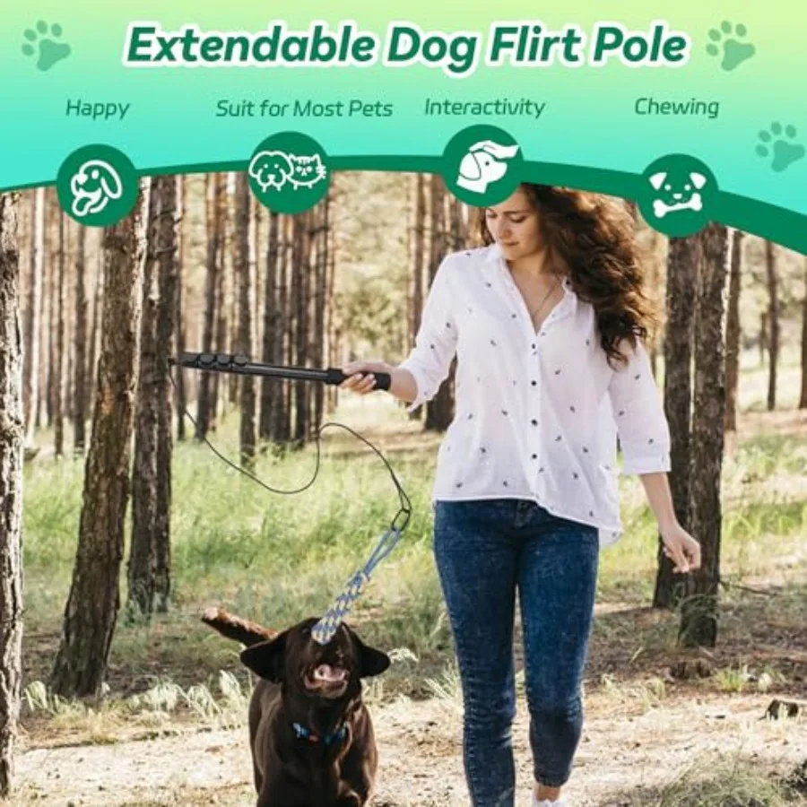 Flirt Pole for Dogs Interactive Toys Tug-of-war for Dogs Five-Section Retractable Adjustable Length for Outdoor Exercise and Tr