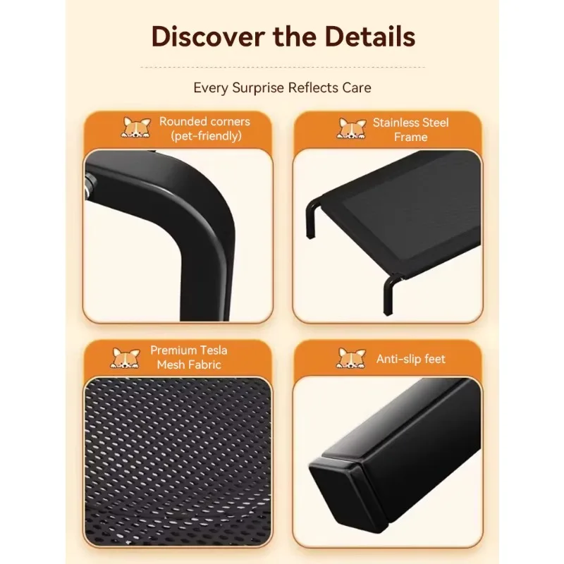 An included canopy top provides shade to your pet and shields them from the sun on hot summer days. The mesh fabric is held tightly in place by a lightweight yet strong powder-coated steel frame with four stable feet that ensure safe and level placement that won’t tip over.