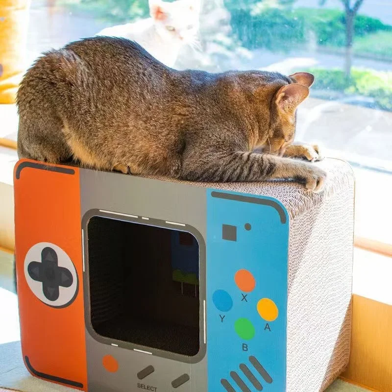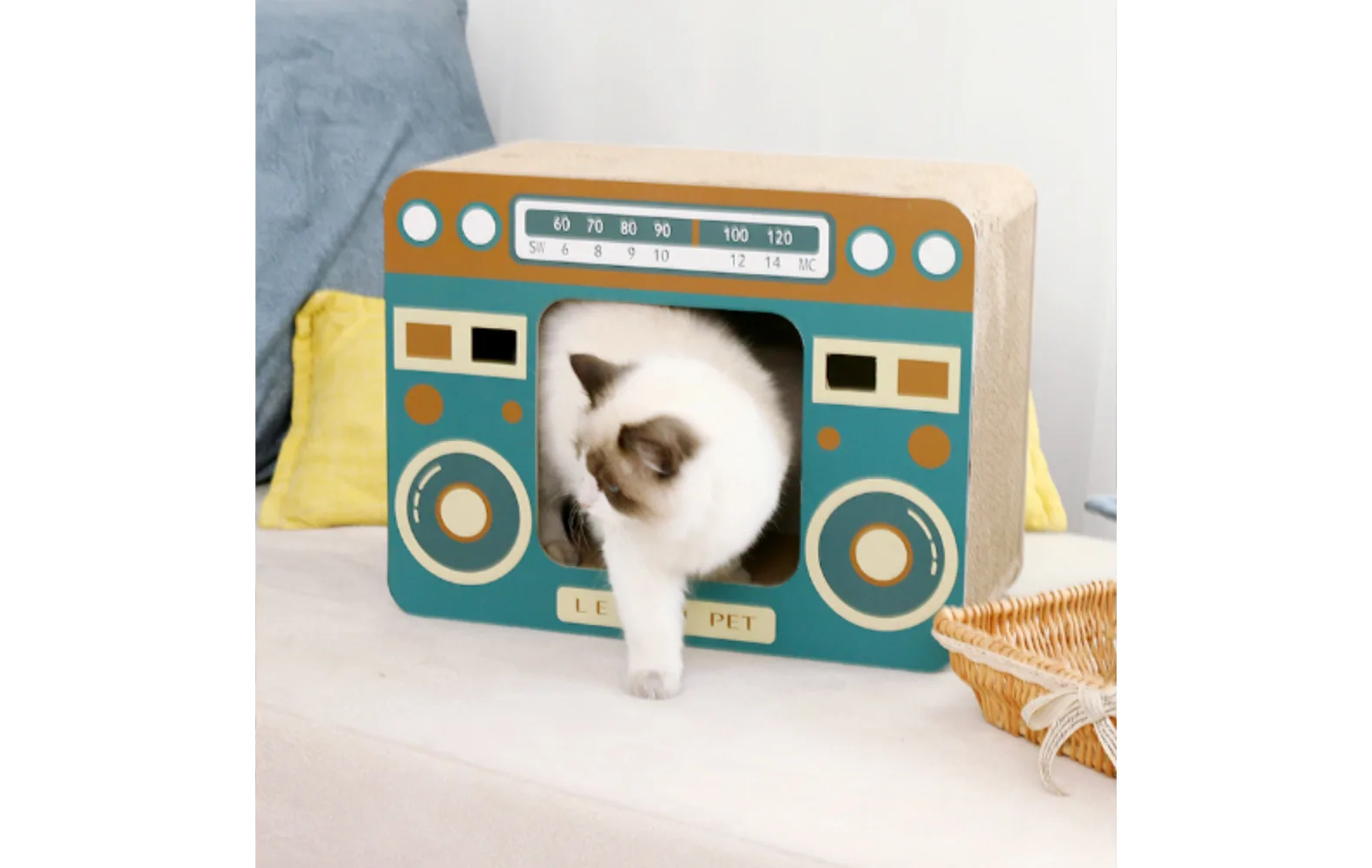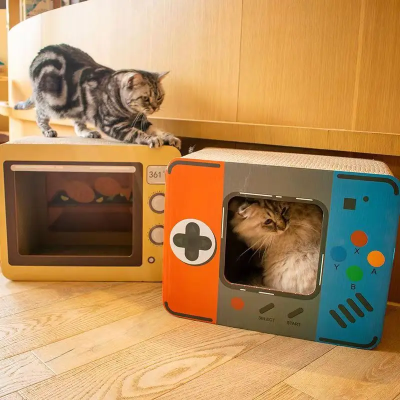 Fun Cat House Large Cat Scratching Post Vintage TV Radio Cat Scratcher Scraper Bed Toy for Cats Scratching Board Indoor Cat Toy